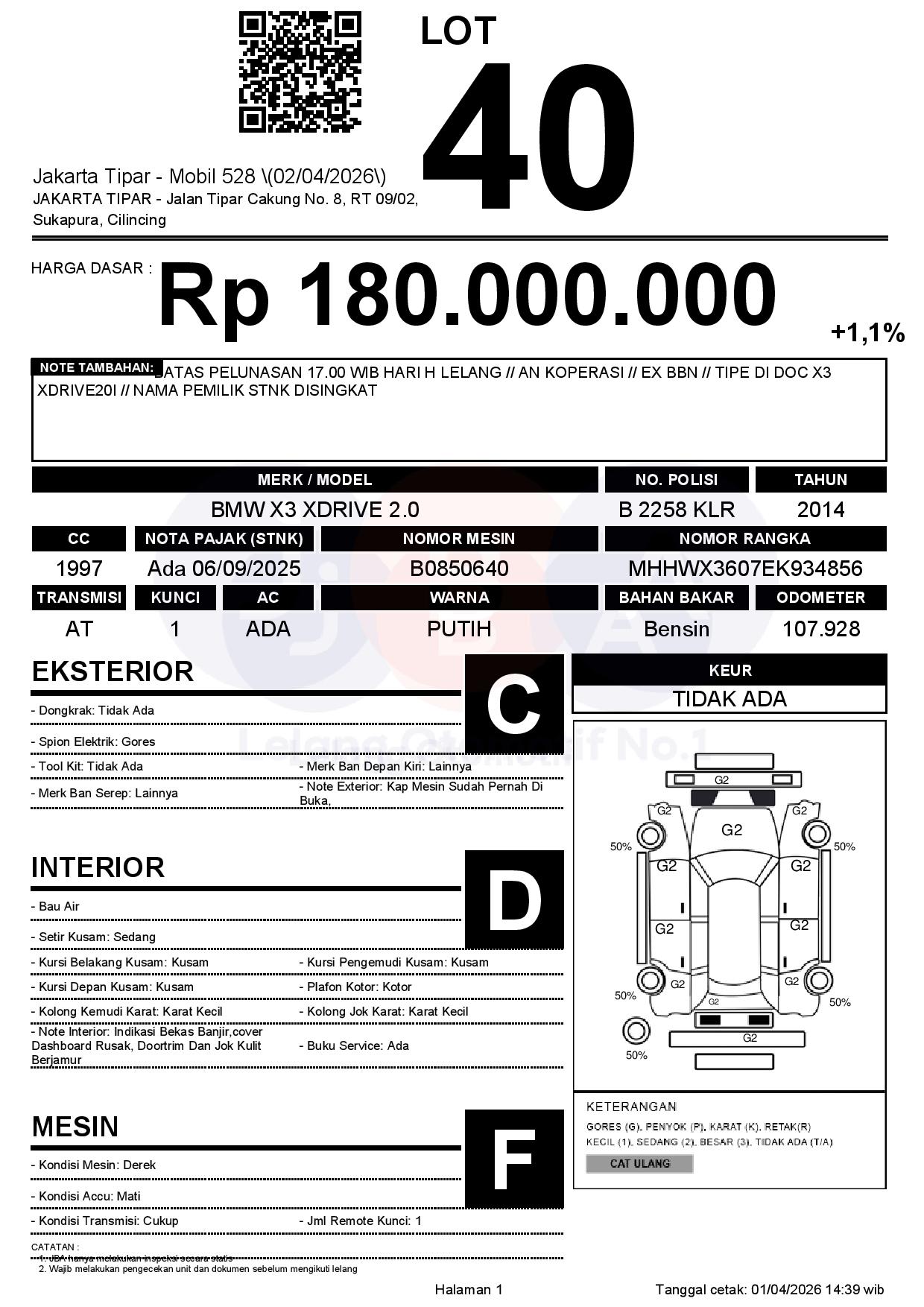 BATAS PELUNASAN 17.00 WIB HARI H LELANG // AN KOPERASI // EX BBN // TIPE DI DOC X3 XDRIVE20I // NAMA PEMILIK STNK DISINGKAT