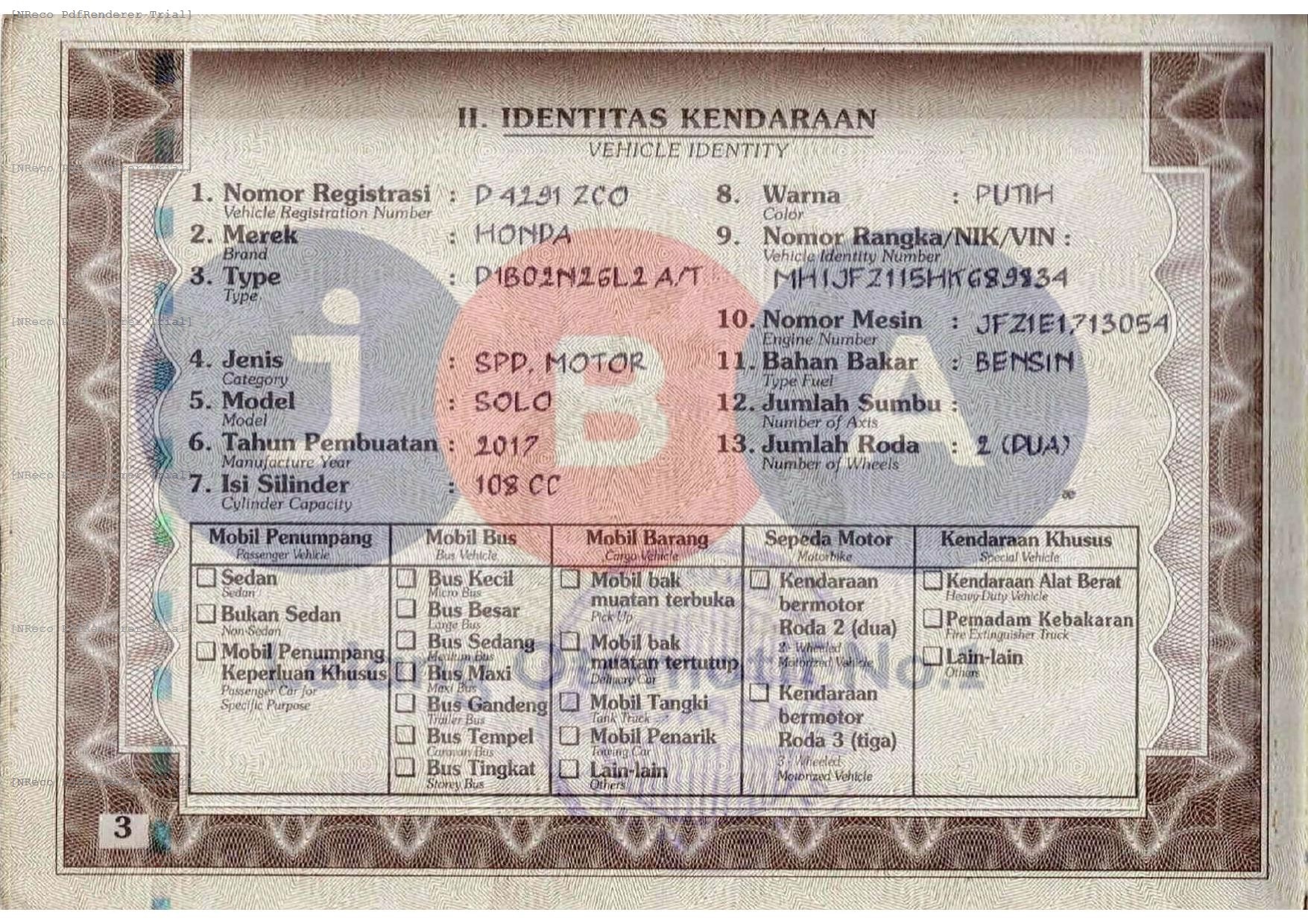 Validity STNK