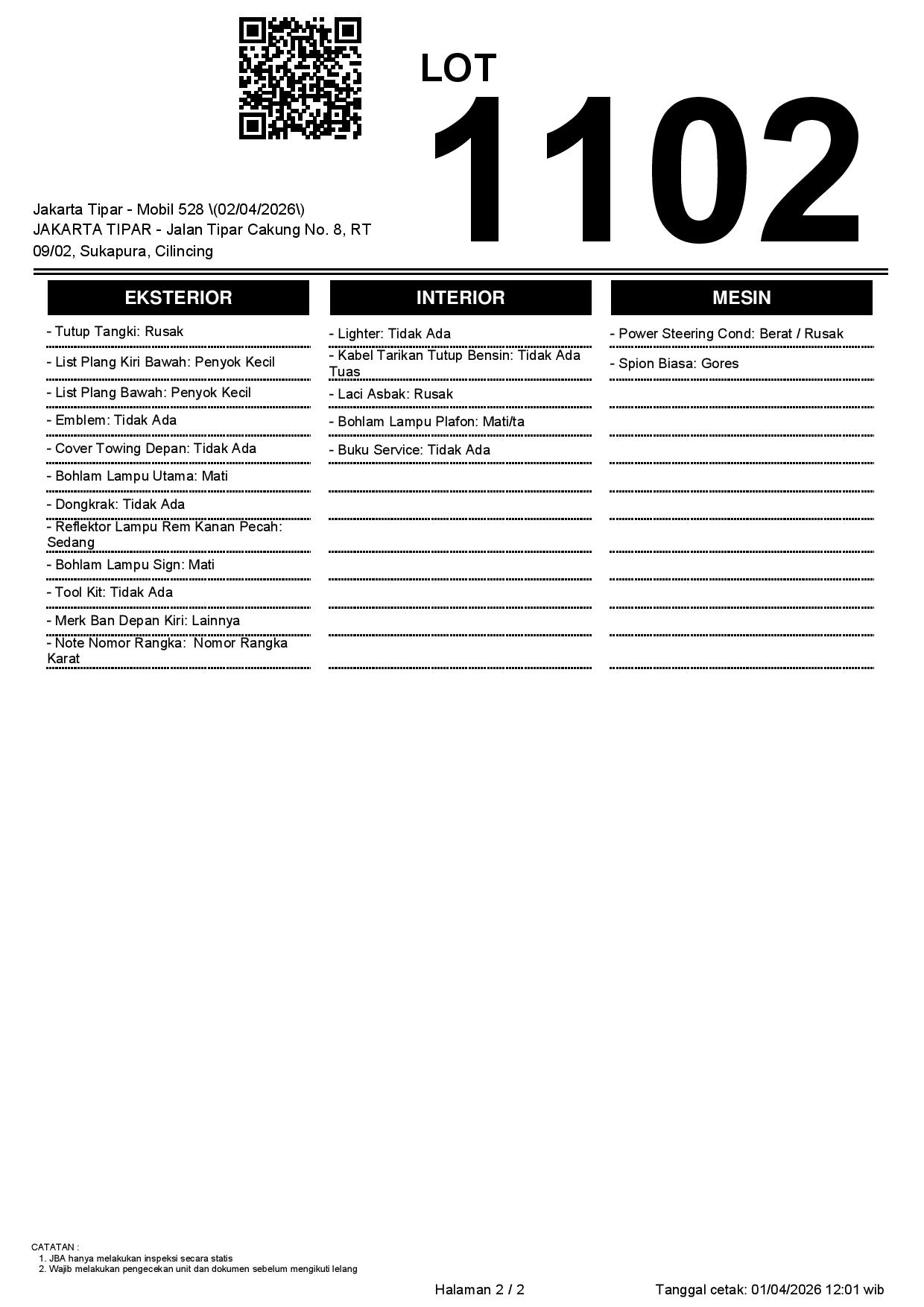 Tanggal Lelang: 02/04/2026 | 14:00 WIB
