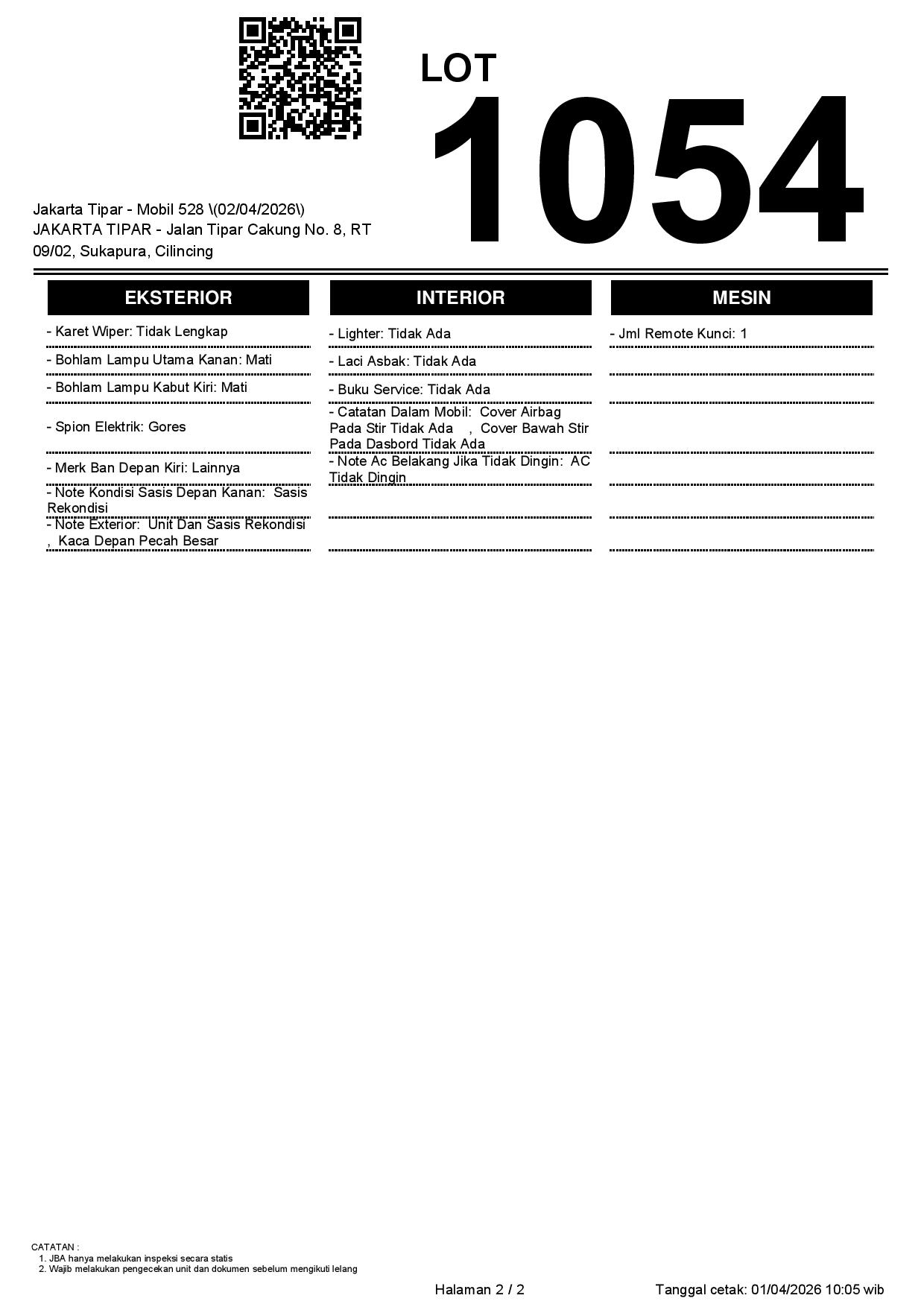 1. Peserta lelang wajib cek unit & dokumen