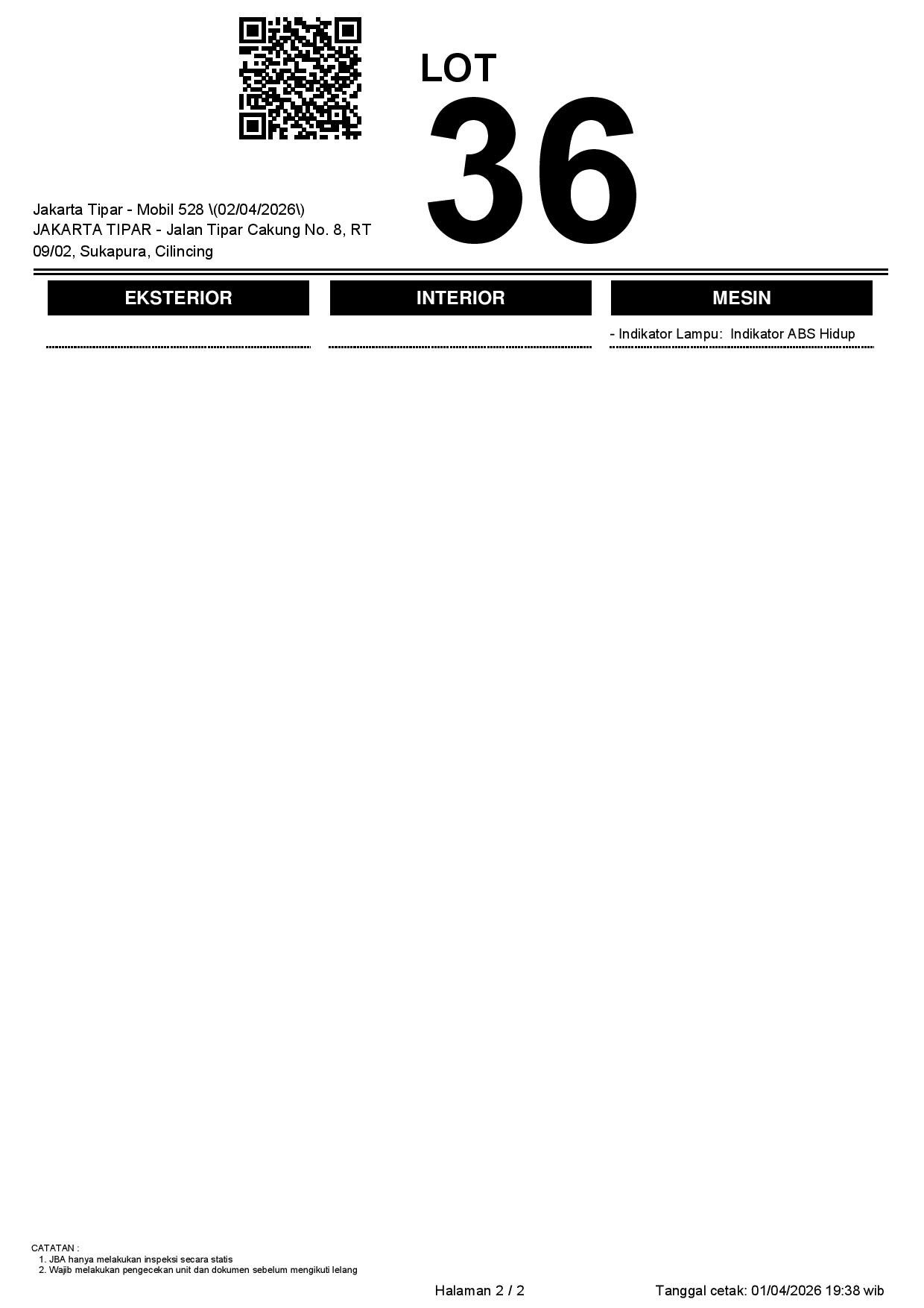 Tanggal Lelang: 02/04/2026 | 13:00 WIB
