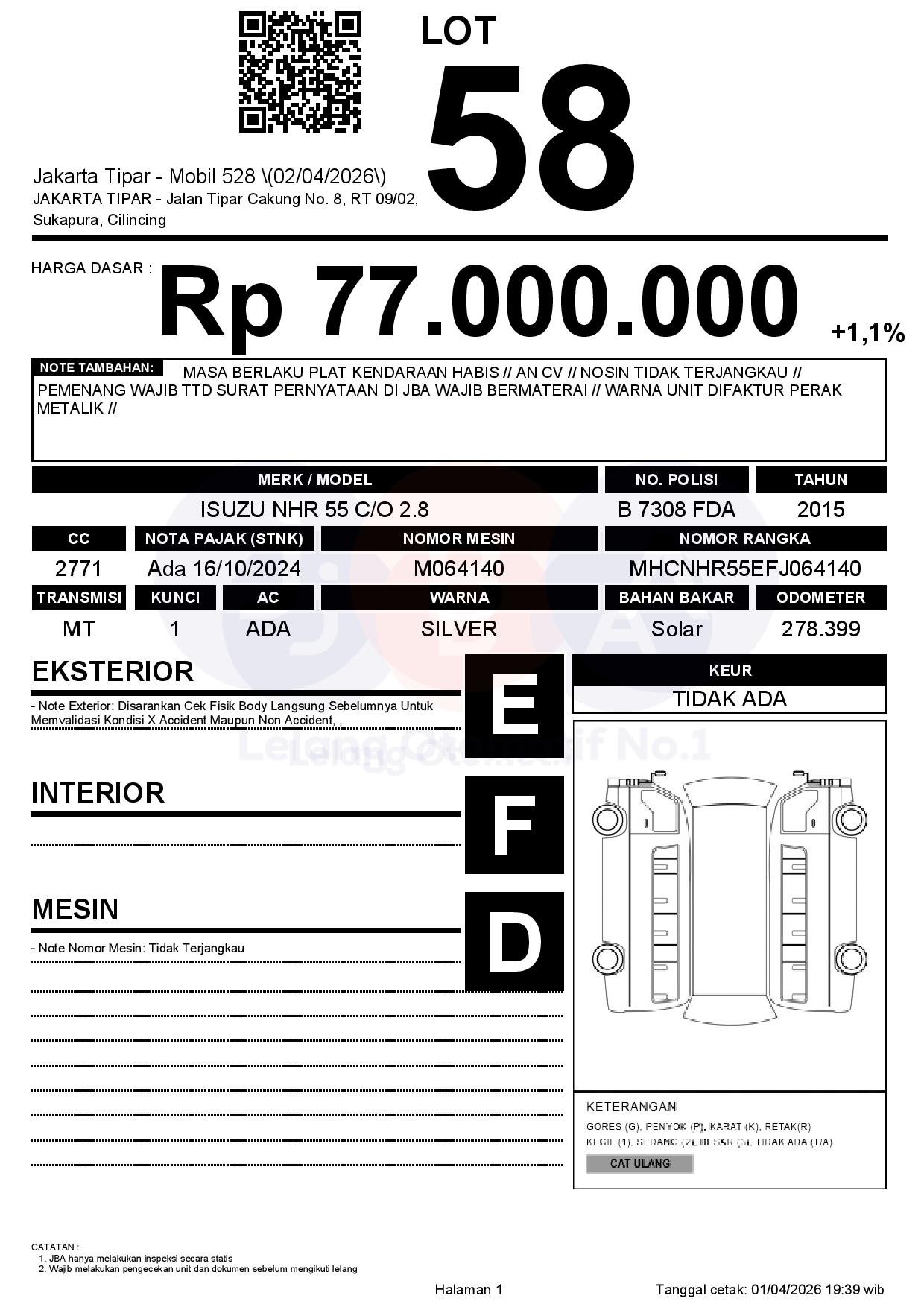 MASA BERLAKU PLAT KENDARAAN HABIS // AN CV // NOSIN TIDAK TERJANGKAU // PEMENANG WAJIB TTD SURAT PERNYATAAN DI JBA WAJIB BERMATERAI // WARNA UNIT DIFAKTUR PERAK METALIK //