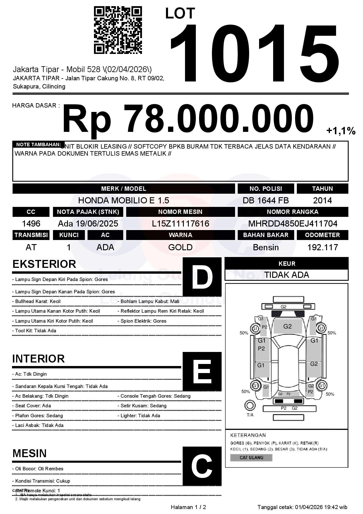 Tanggal Lelang: 02/04/2026 | 14:00 WIB