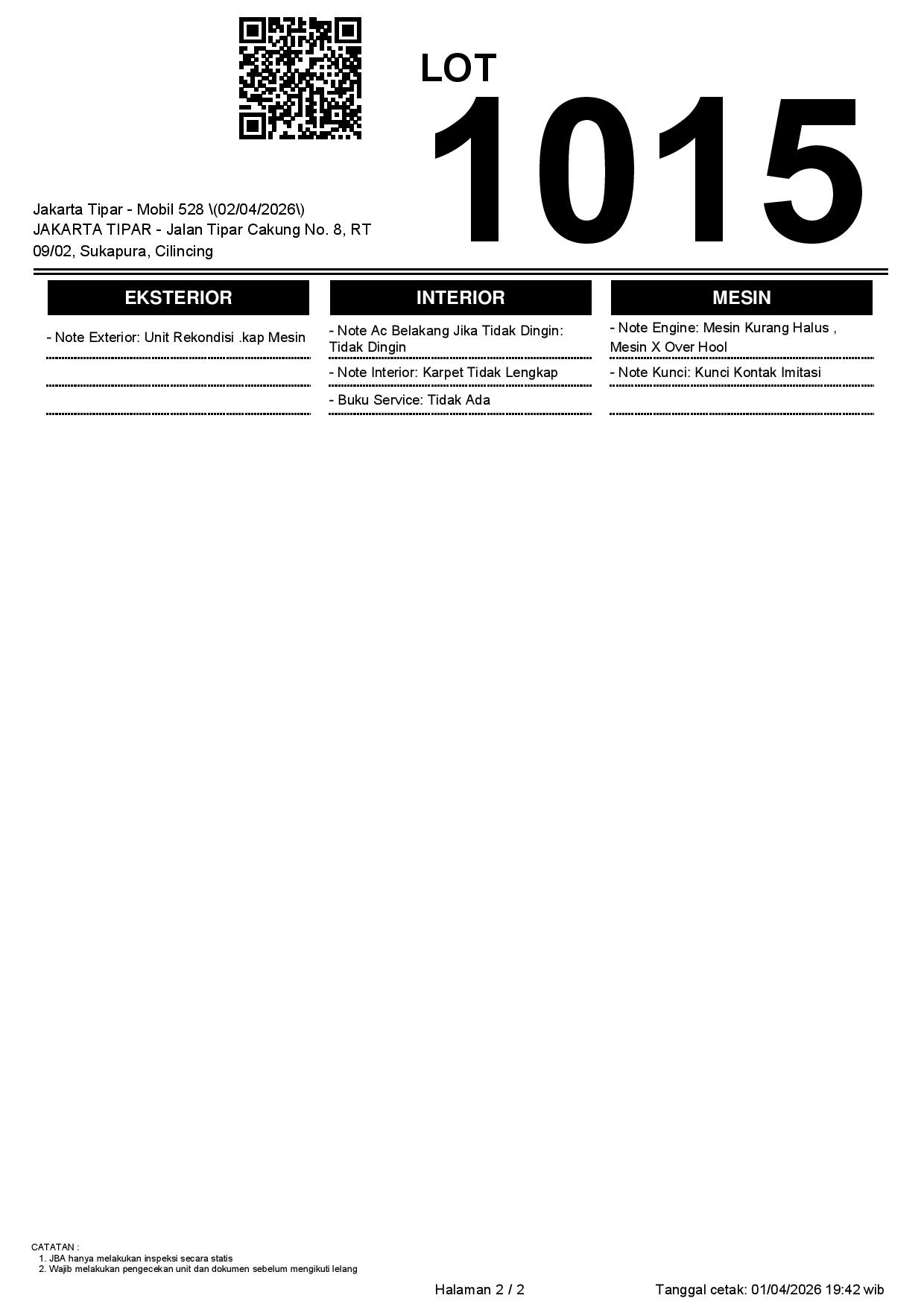 2. Peserta lelang wajib cek unit & dokumen