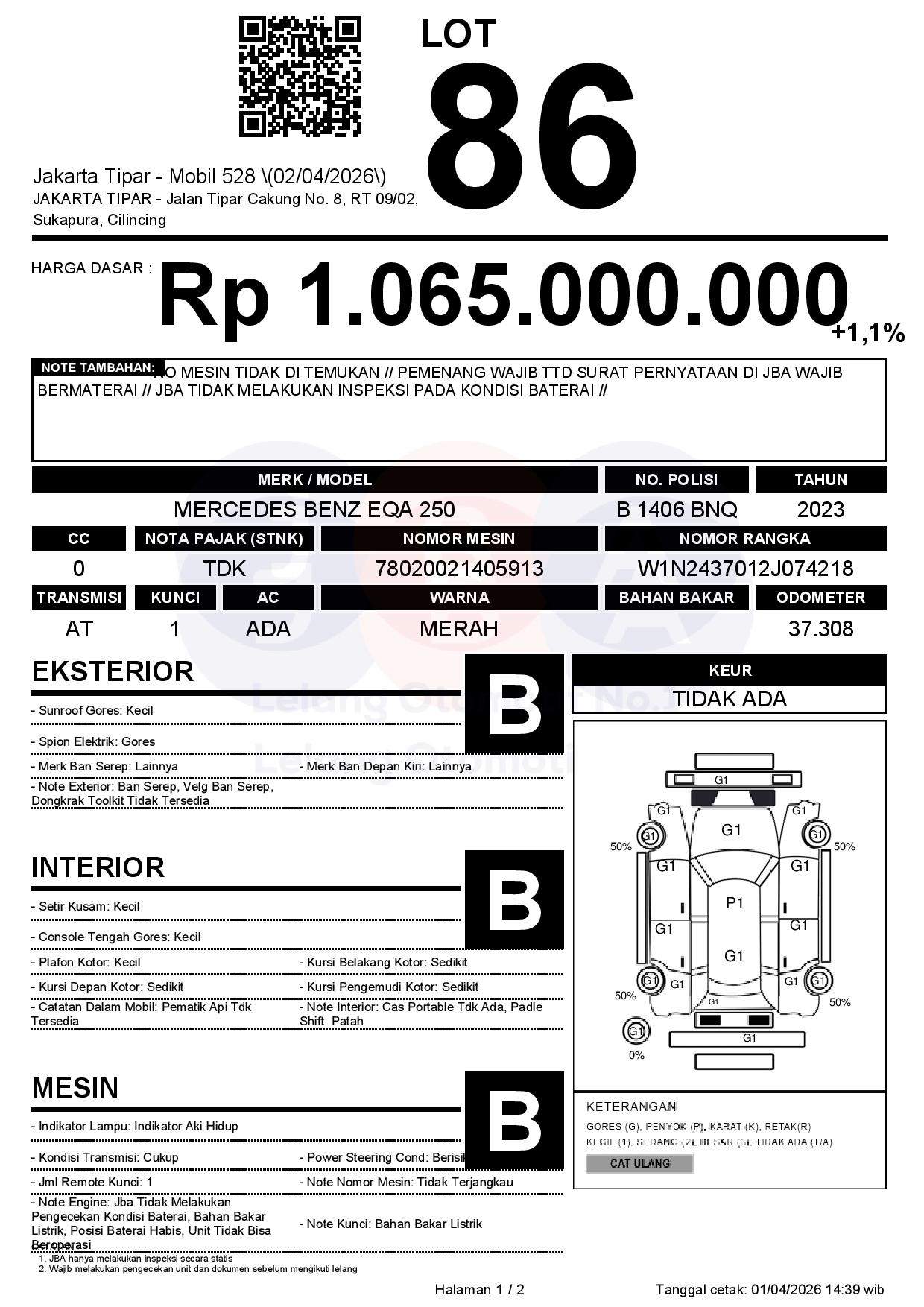 NO MESIN TIDAK DI TEMUKAN // PEMENANG WAJIB TTD SURAT PERNYATAAN DI JBA WAJIB BERMATERAI // JBA TIDAK MELAKUKAN INSPEKSI PADA KONDISI BATERAI //