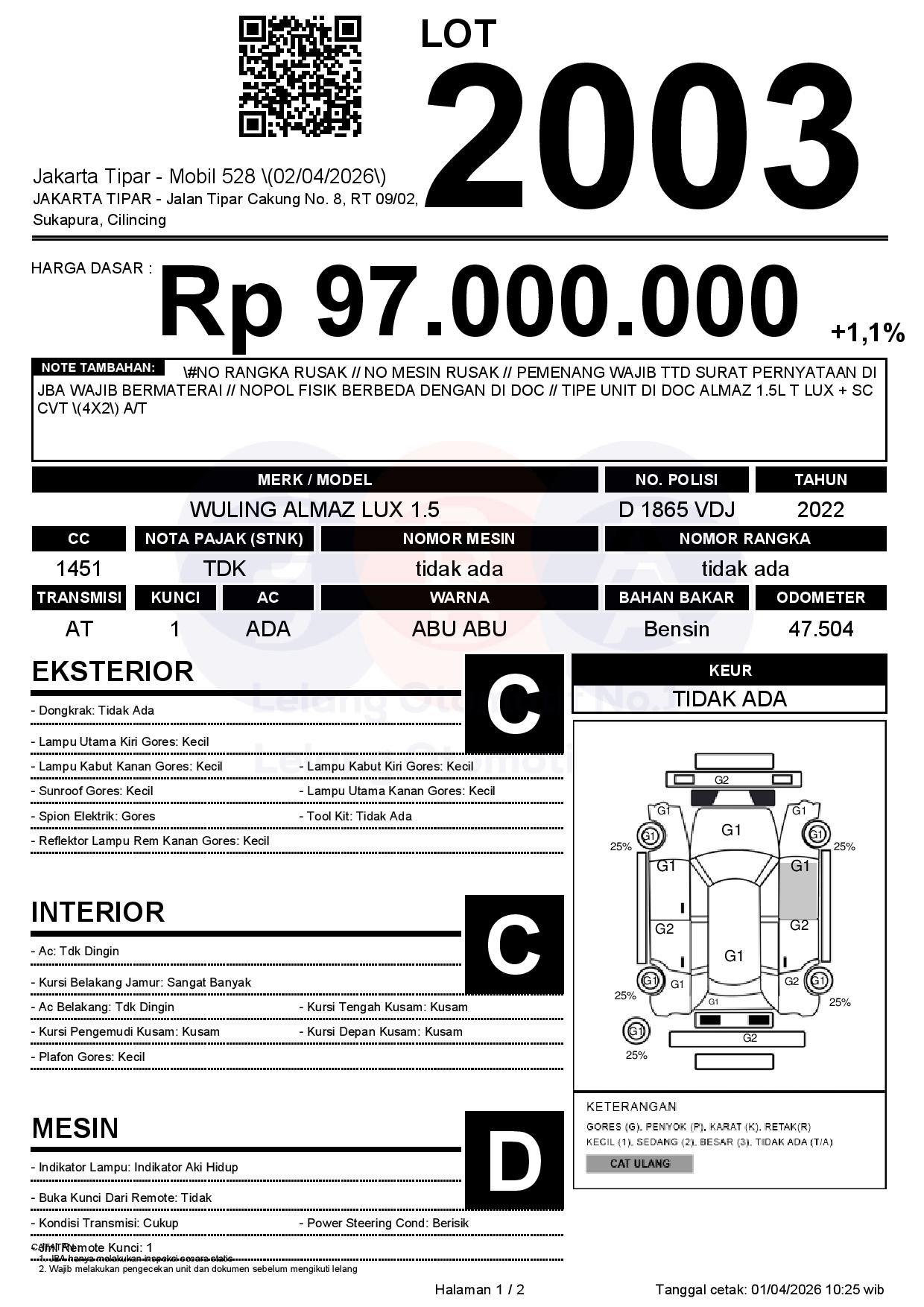 Tanggal Lelang: 02/04/2026 | 14:00 WIB