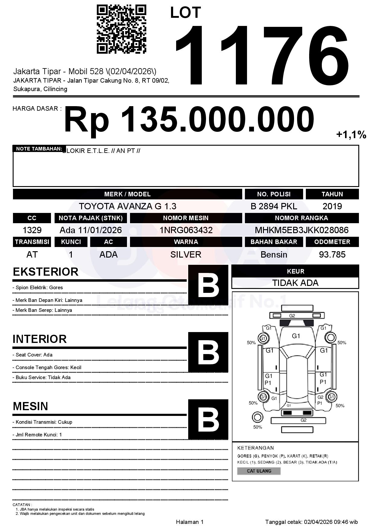 Tanggal Lelang: 02/04/2026 | 14:00 WIB