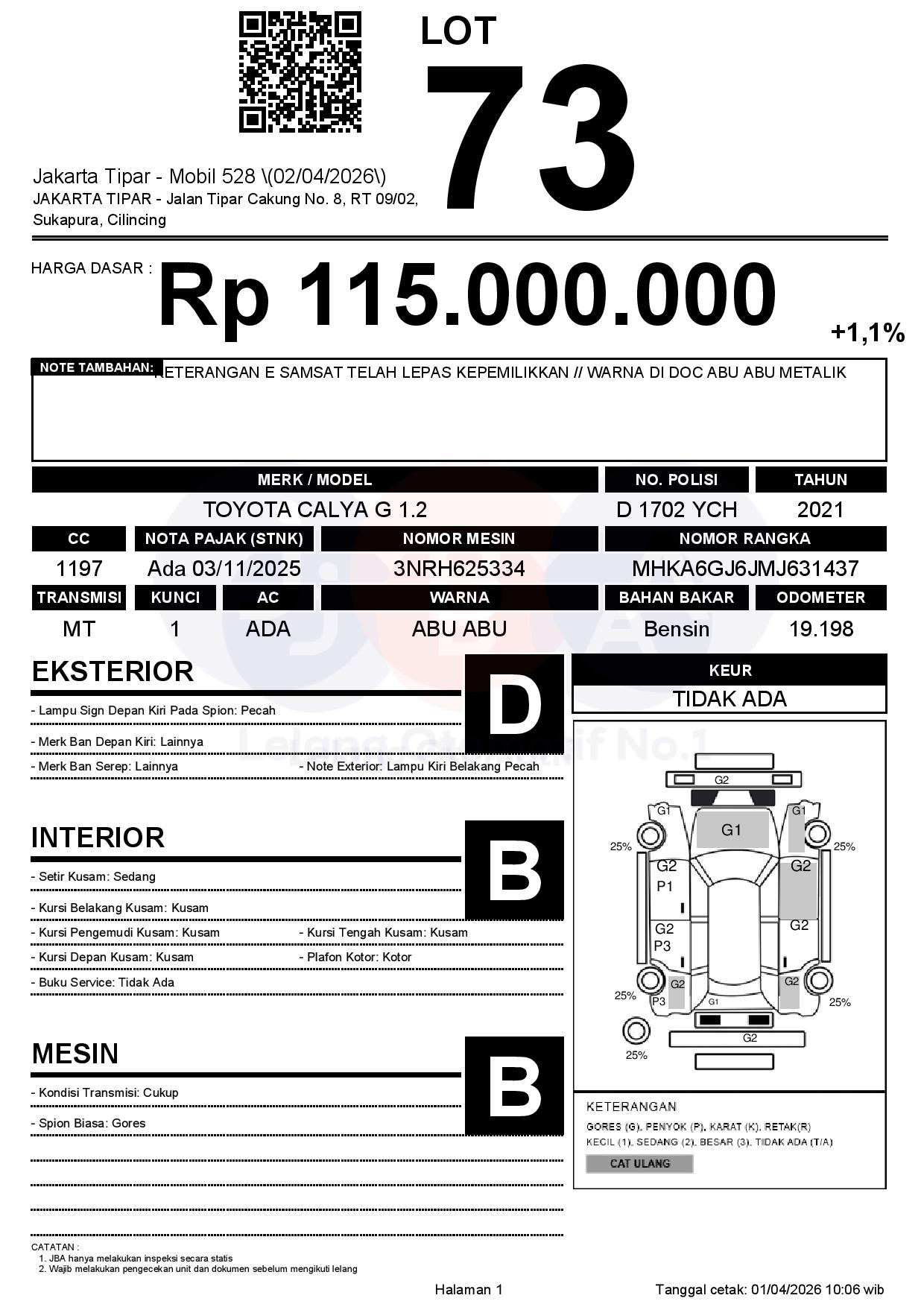 Tanggal Lelang: 02/04/2026 | 13:00 WIB