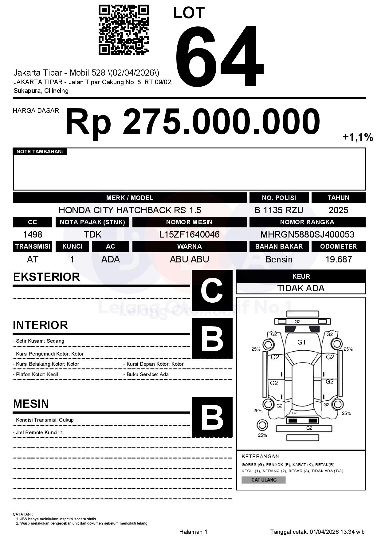 Tanggal Lelang: 02/04/2026 | 13:00 WIB