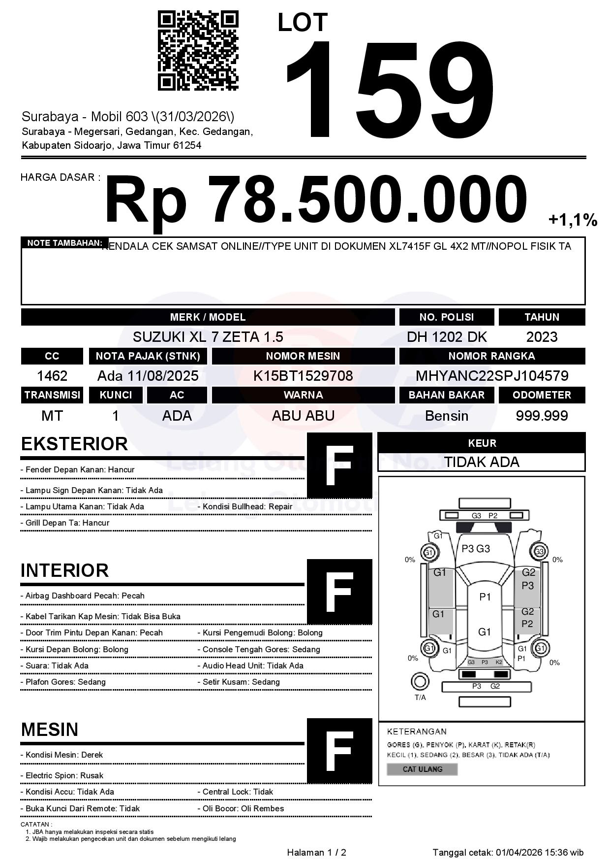Tanggal Lelang: 02/04/2026 | 14:00 WIB