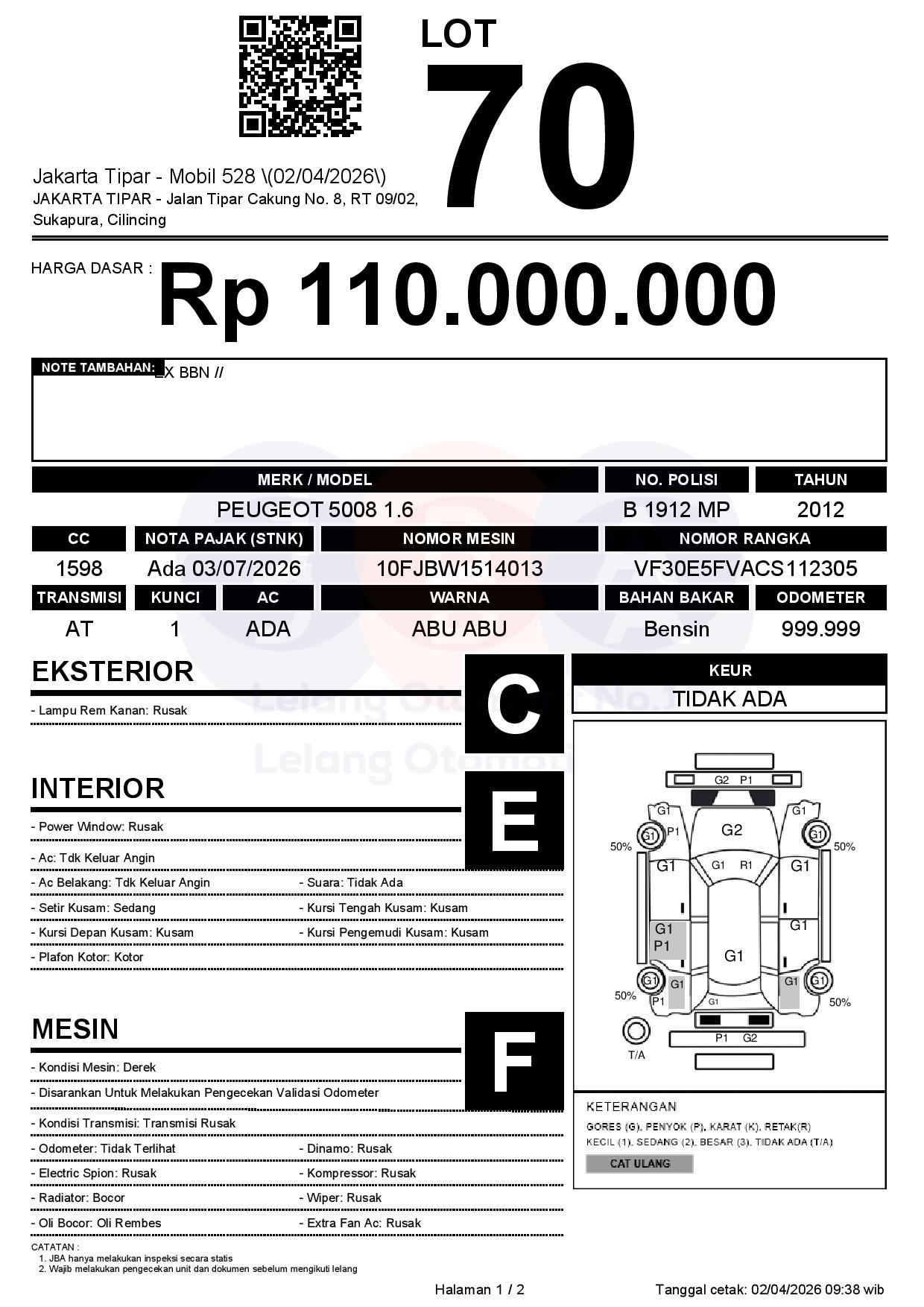 Tanggal Lelang: 02/04/2026 | 13:00 WIB