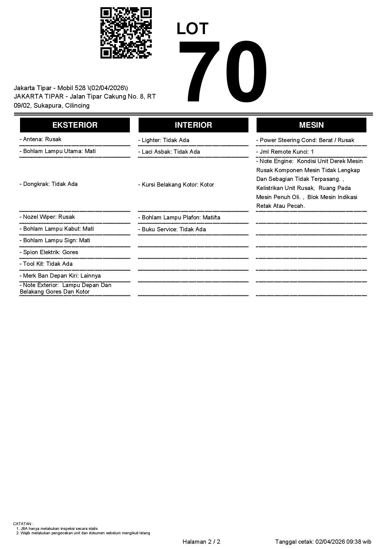 1. Peserta lelang wajib cek unit & dokumen