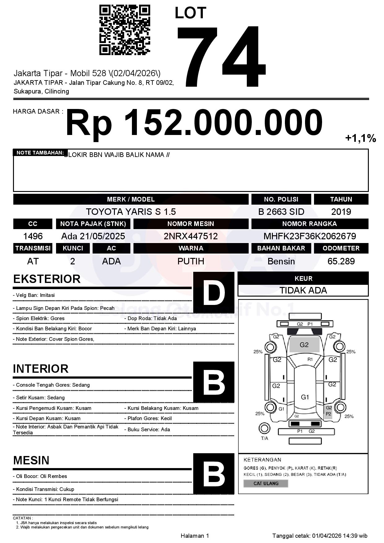 Tanggal Lelang: 02/04/2026 | 13:00 WIB