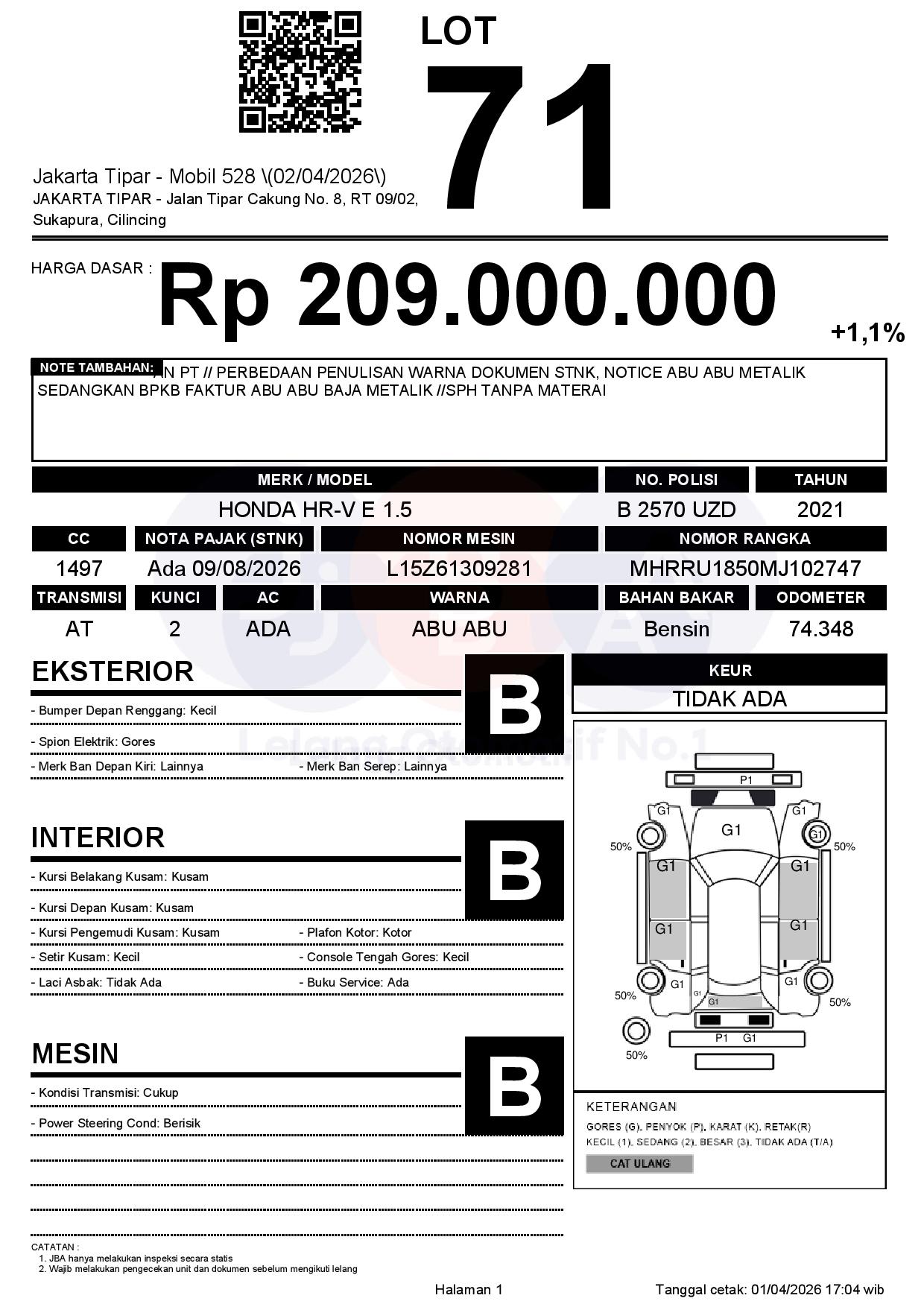 Tanggal Lelang: 02/04/2026 | 13:00 WIB
