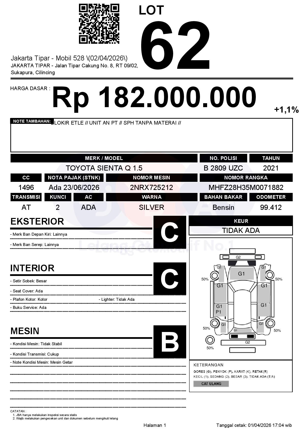 Tanggal Lelang: 02/04/2026 | 13:00 WIB
