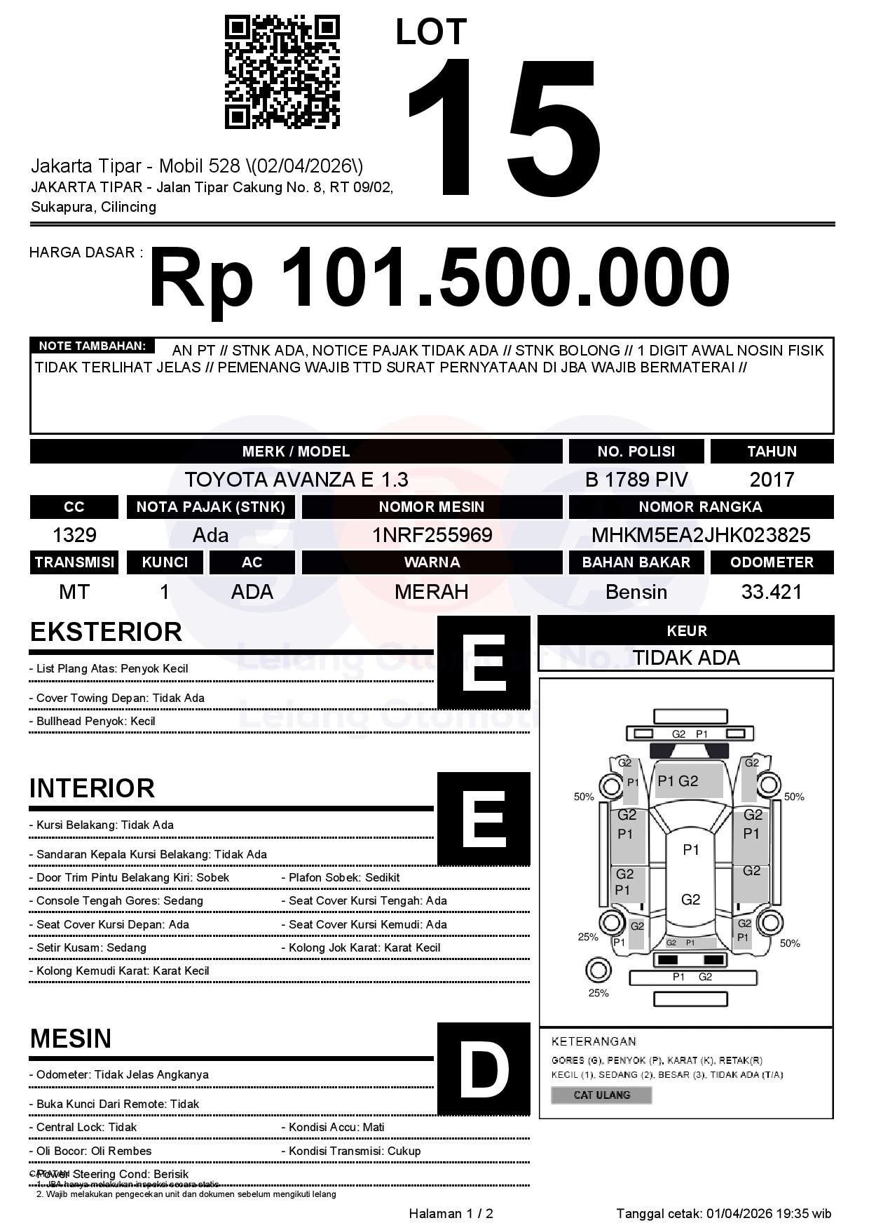 Tanggal Lelang: 02/04/2026 | 13:00 WIB