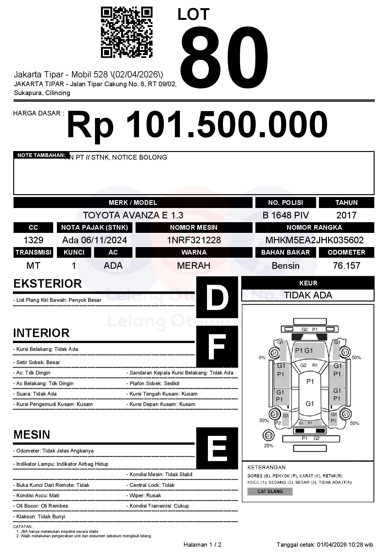 Tanggal Lelang: 02/04/2026 | 13:00 WIB