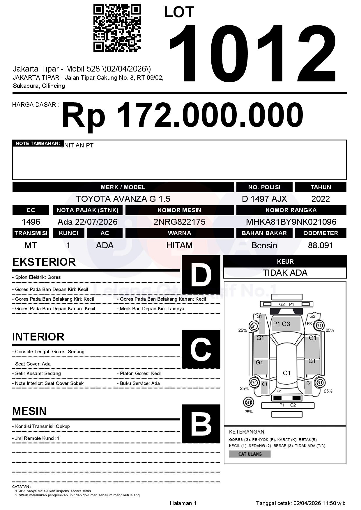 Tanggal Lelang: 02/04/2026 | 14:00 WIB
