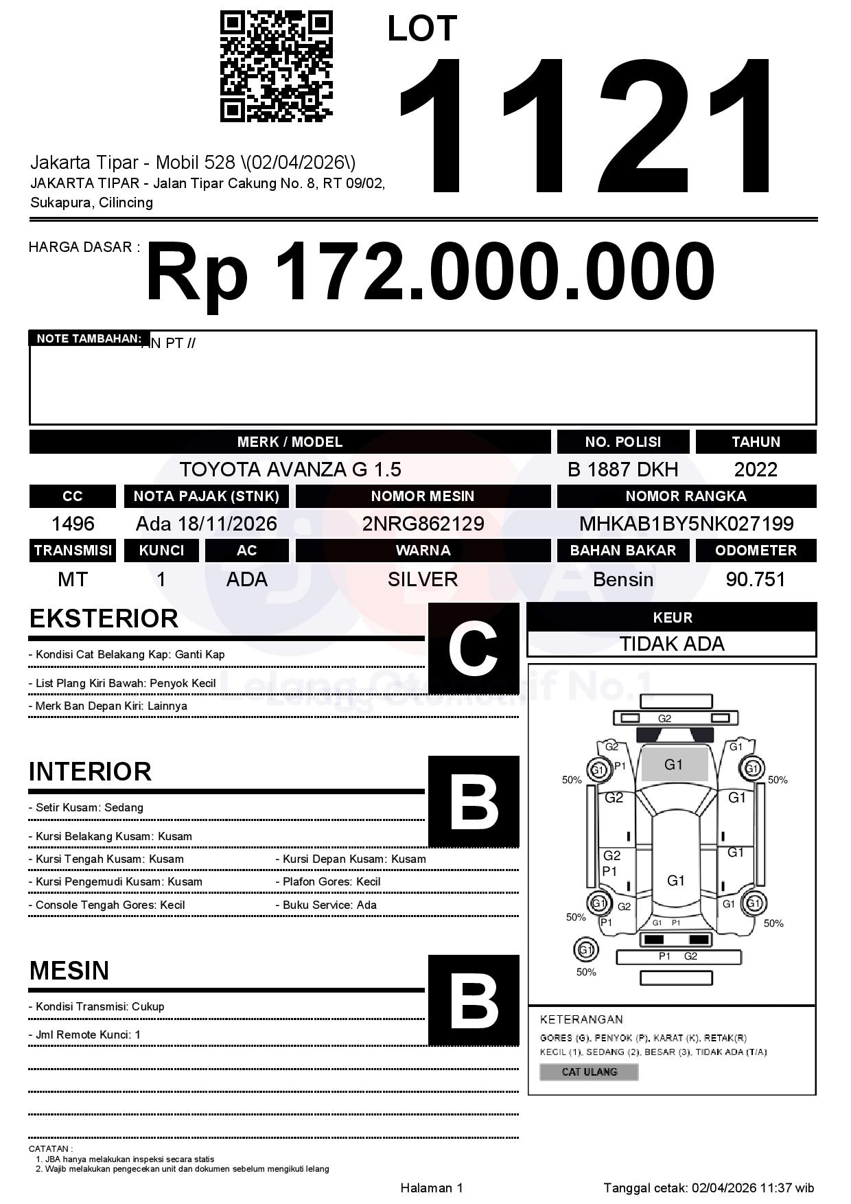 Tanggal Lelang: 02/04/2026 | 14:00 WIB