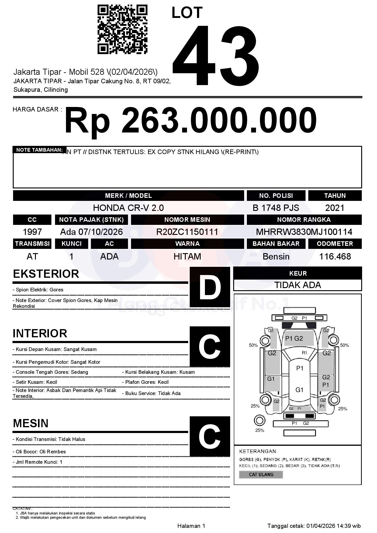 1. Peserta lelang wajib cek unit & dokumen