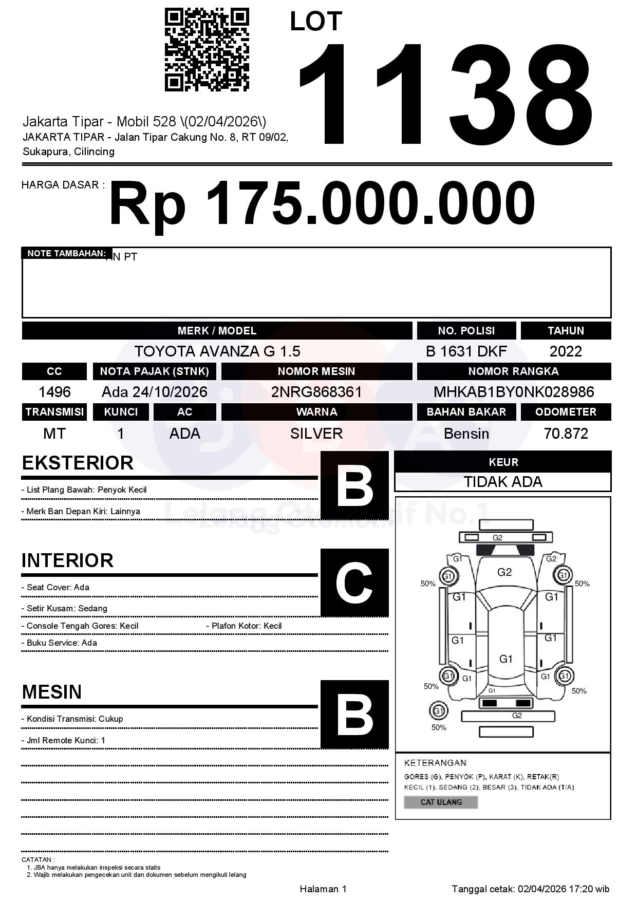 Tanggal Lelang: 02/04/2026 | 14:00 WIB