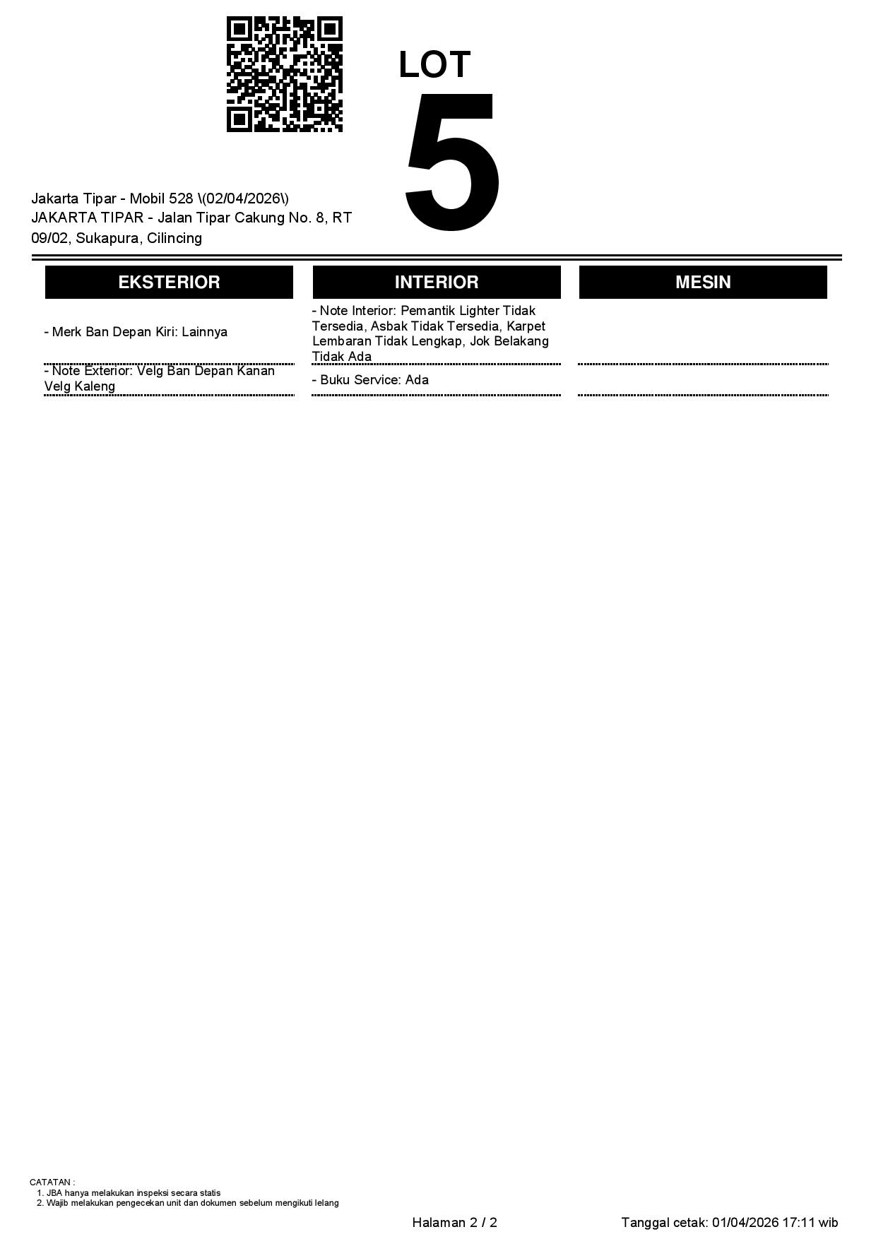 Tanggal Lelang: 02/04/2026 | 13:00 WIB
