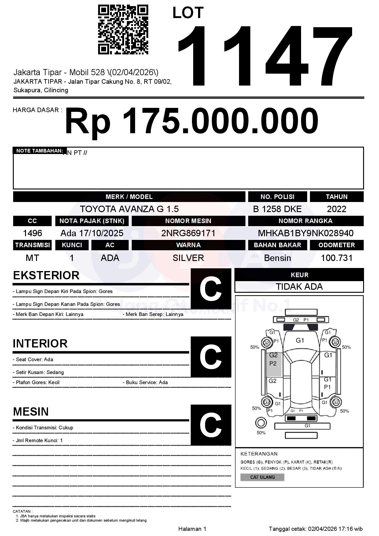 Tanggal Lelang: 02/04/2026 | 14:00 WIB