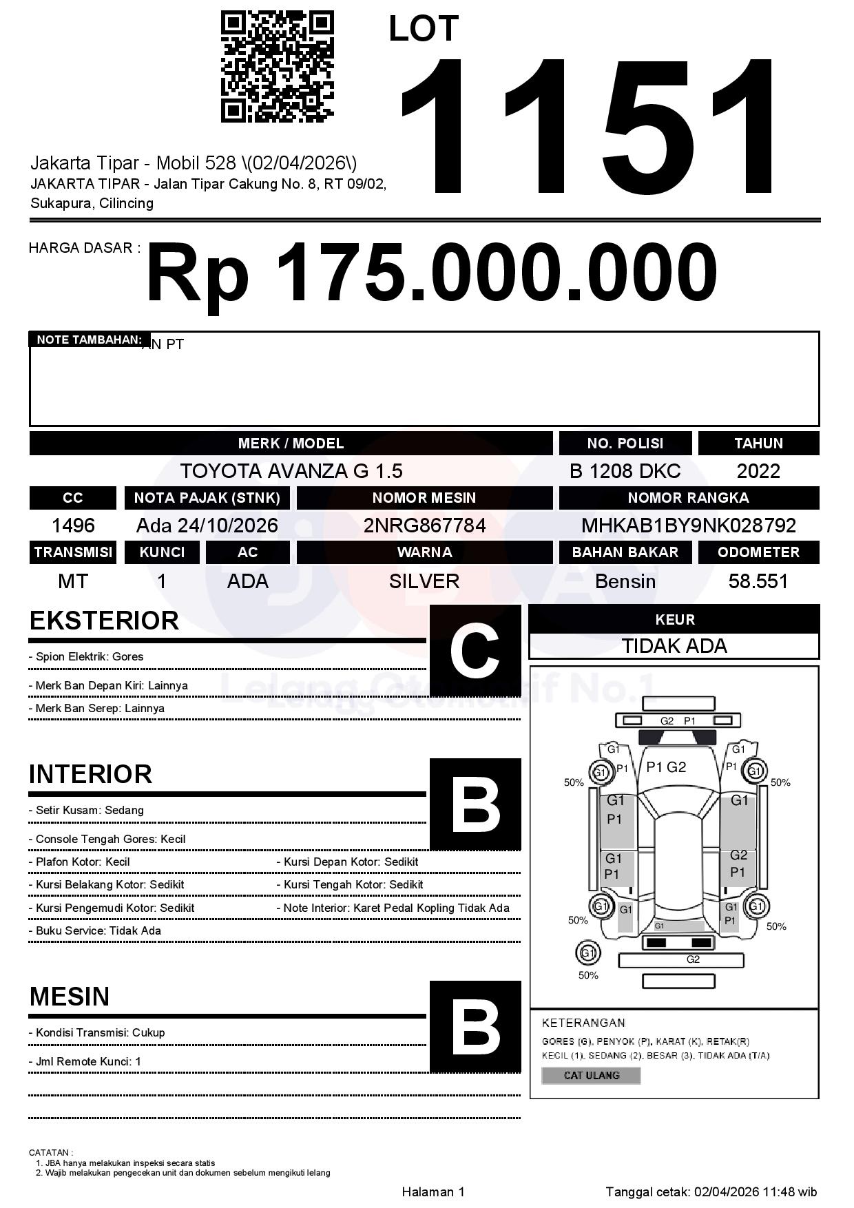 Tanggal Lelang: 02/04/2026 | 14:00 WIB