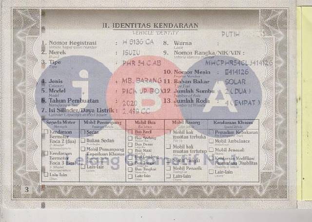 UNIT AN PT // MODEL UNIT PADA STNK/NOTICE PAJAK (PICK UP BOX) // KENDALA CEK E SAMSAT // TYPE UNIT PADA DOKUMEN ISUZU PHR 54C AB // TERDAPAT BEKAS TIPEX TULISAN WARNA PADA BPKB //