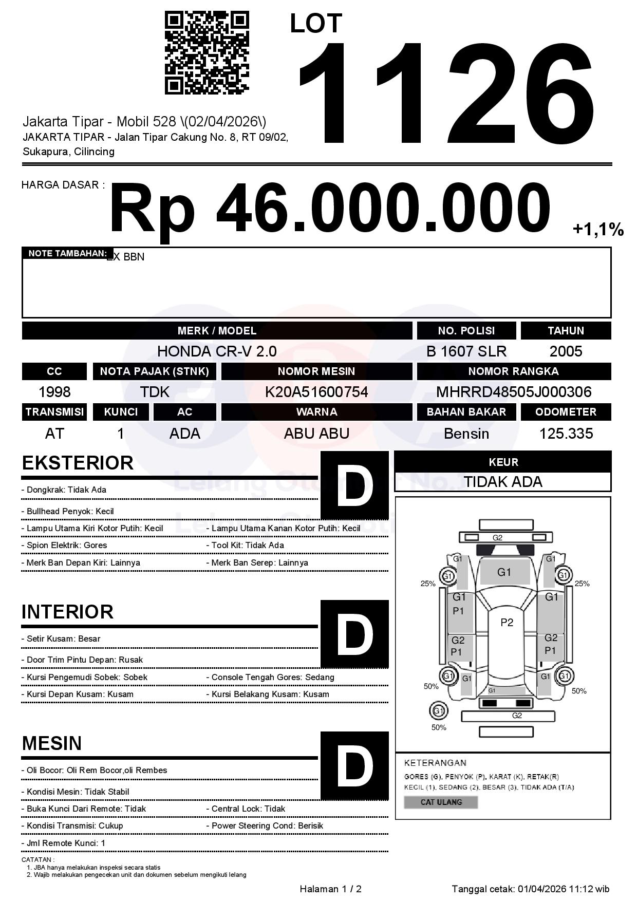 Tanggal Lelang: 02/04/2026 | 14:00 WIB