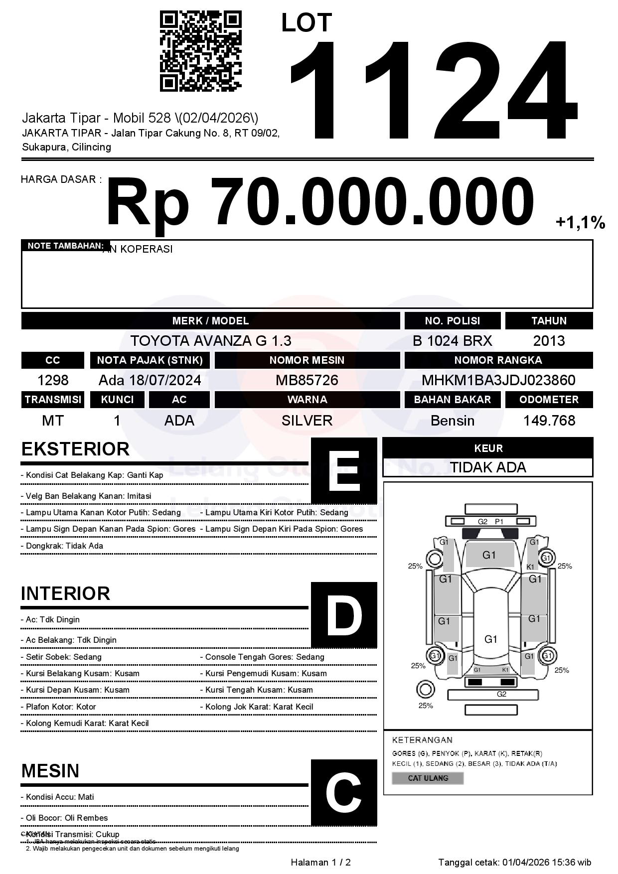 Tanggal Lelang: 02/04/2026 | 14:00 WIB