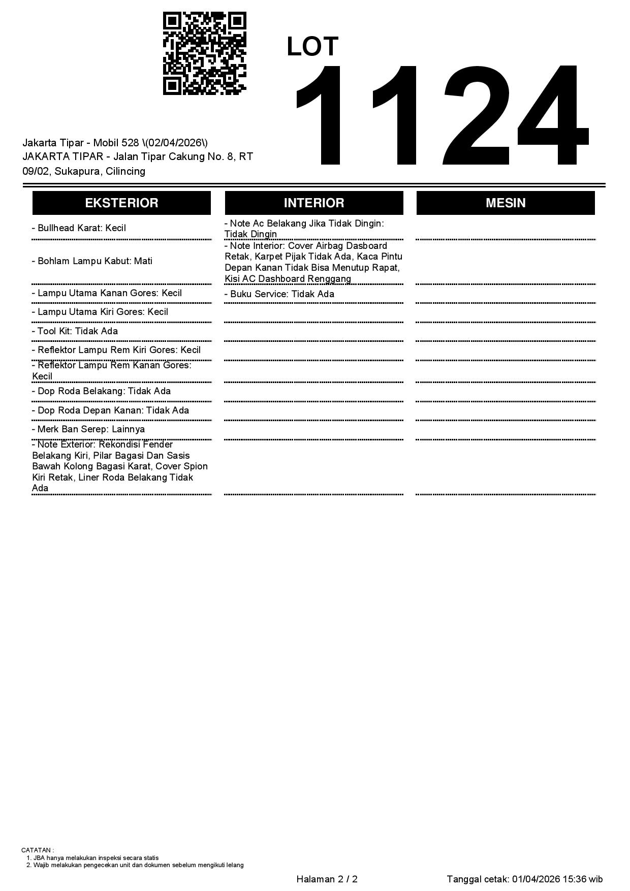 2. Peserta lelang wajib cek unit & dokumen