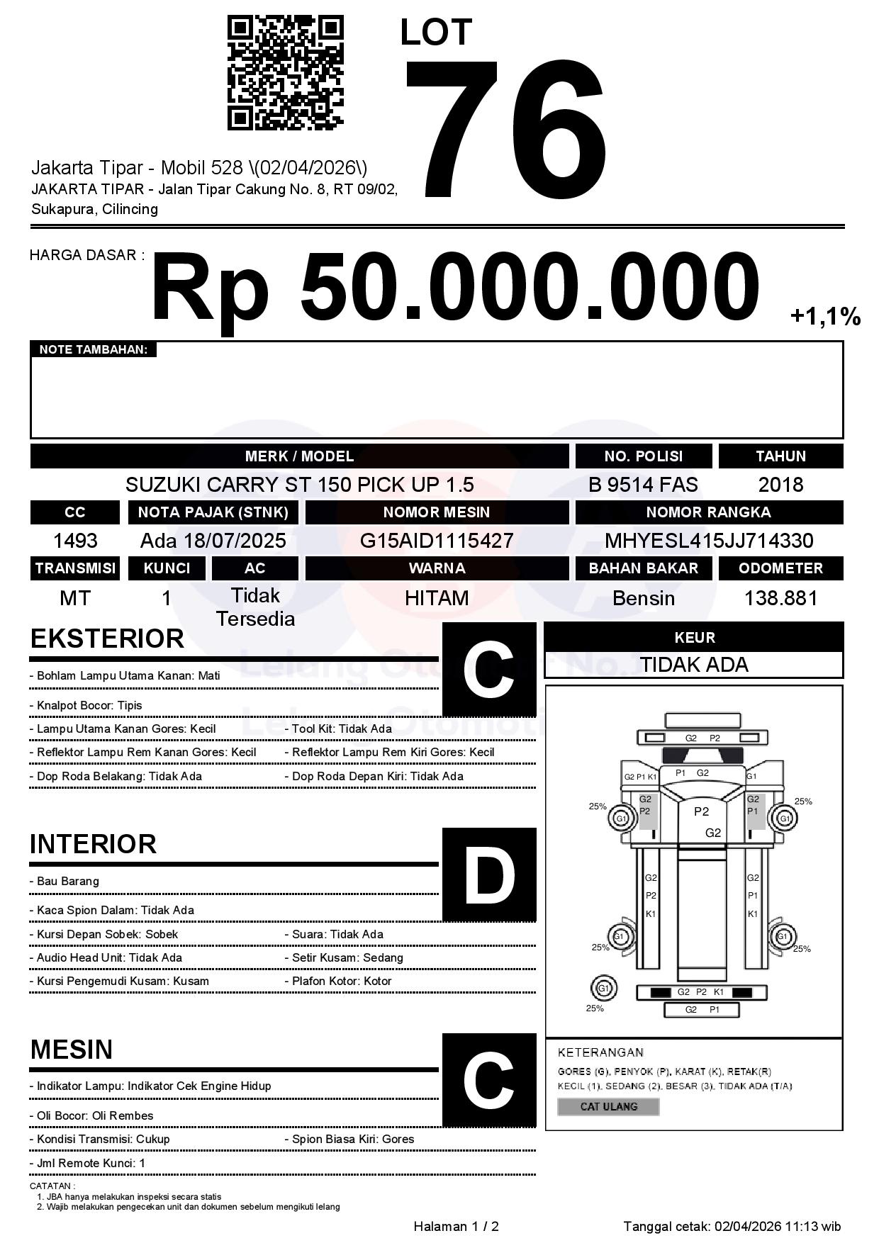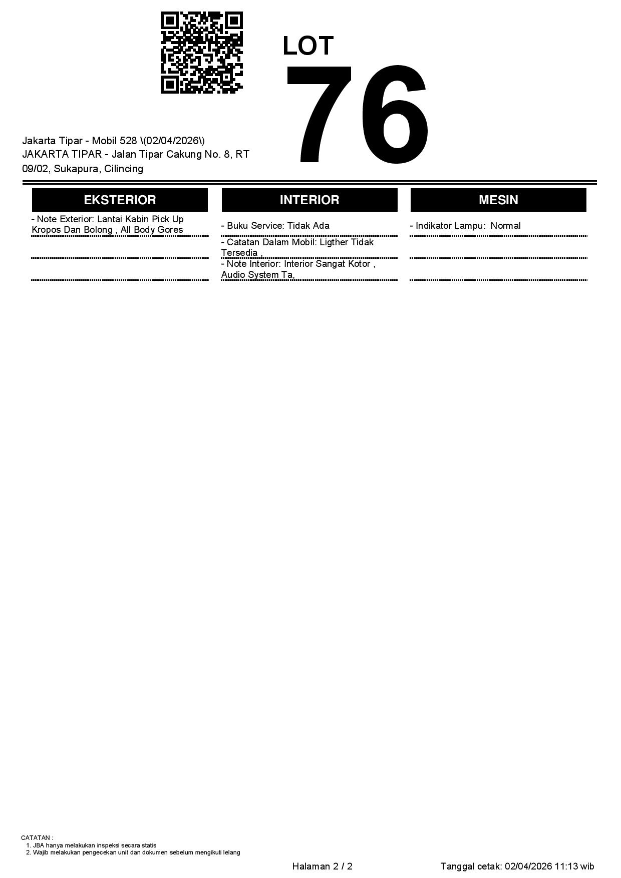 Tanggal Lelang: 02/04/2026 | 13:00 WIB