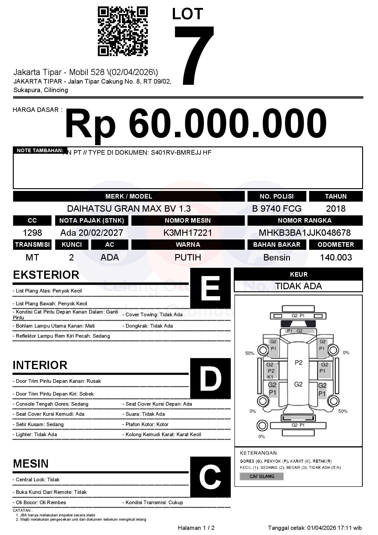 Tanggal Lelang: 02/04/2026 | 13:00 WIB