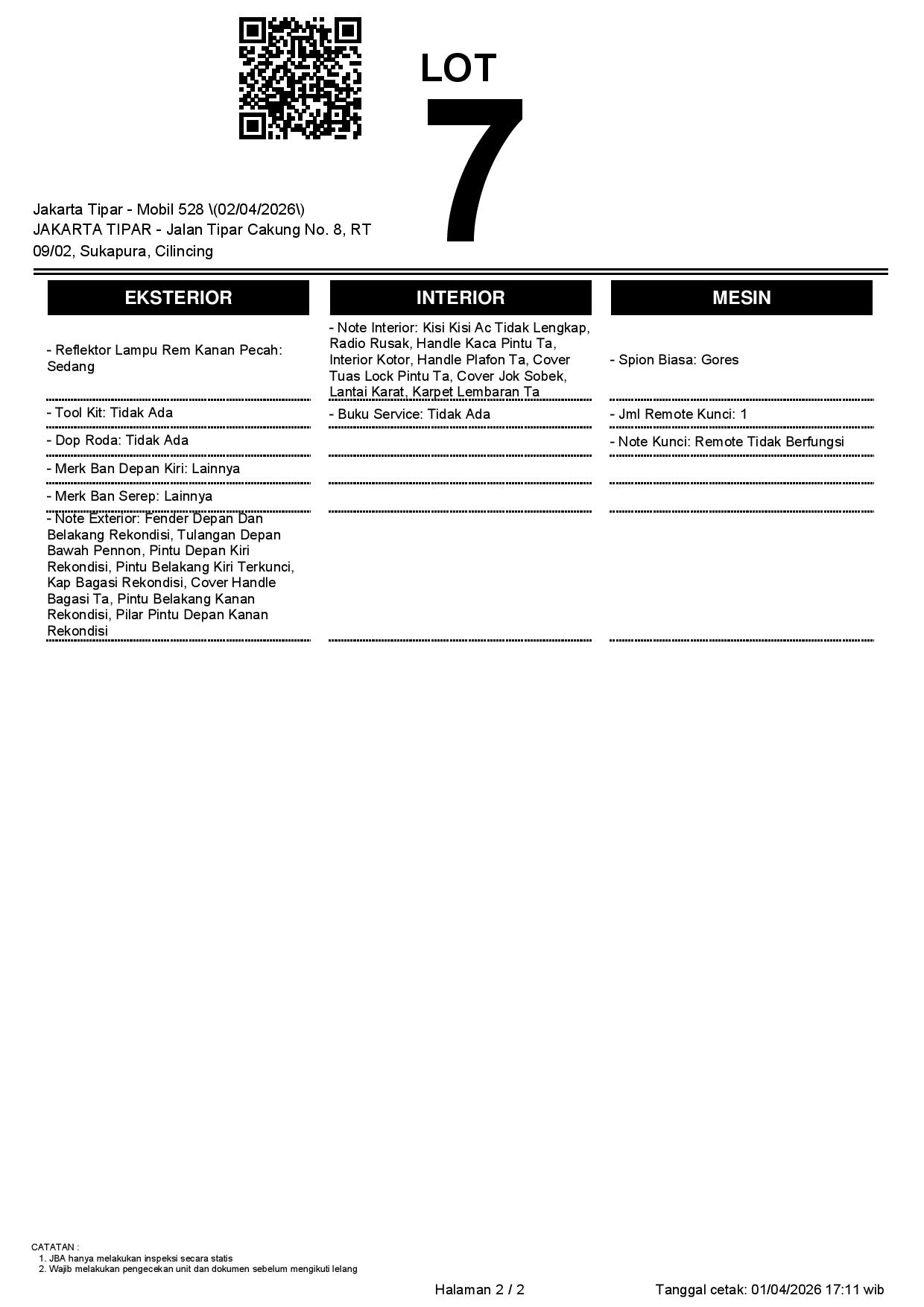 1. Peserta lelang wajib cek unit & dokumen