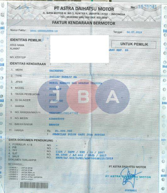 AN PT // TYPE DI DOKUMEN: S401RP-PMREJJ HA // MODEL PADA CEK SAMSAT DEL.VAN (BSWG) //