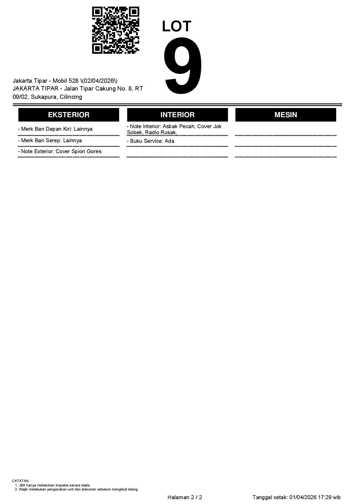 Tanggal Lelang: 02/04/2026 | 13:00 WIB
