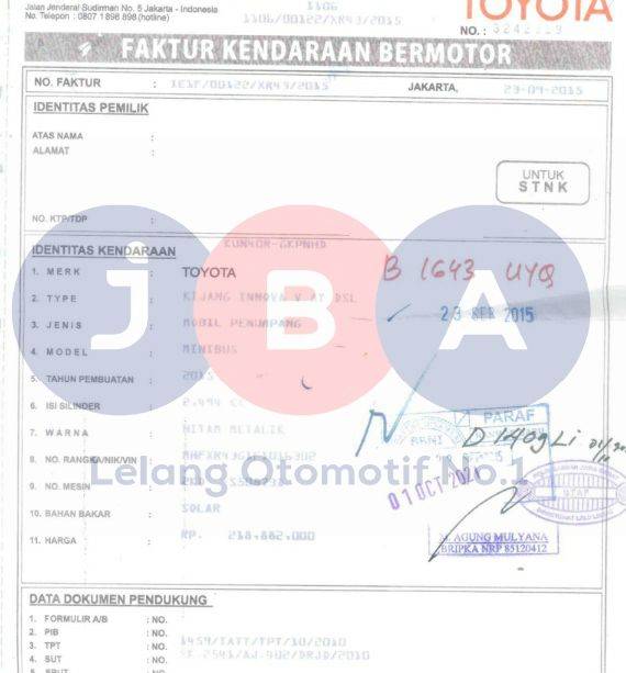 TERCANTUM EX NOPOL B 1643 UYQ DI STNK // EX BBN //