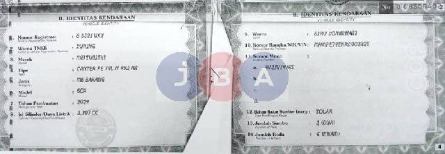 AN PT // TNKB KUNING // WARNA DISTNK,NOTICE BIRU KOMBINASI // TIPE PADA DOK DAN CEK SAMSAT CANTER FE 74L N // MODEL PADA CEK SAMSAT BACK HOE //