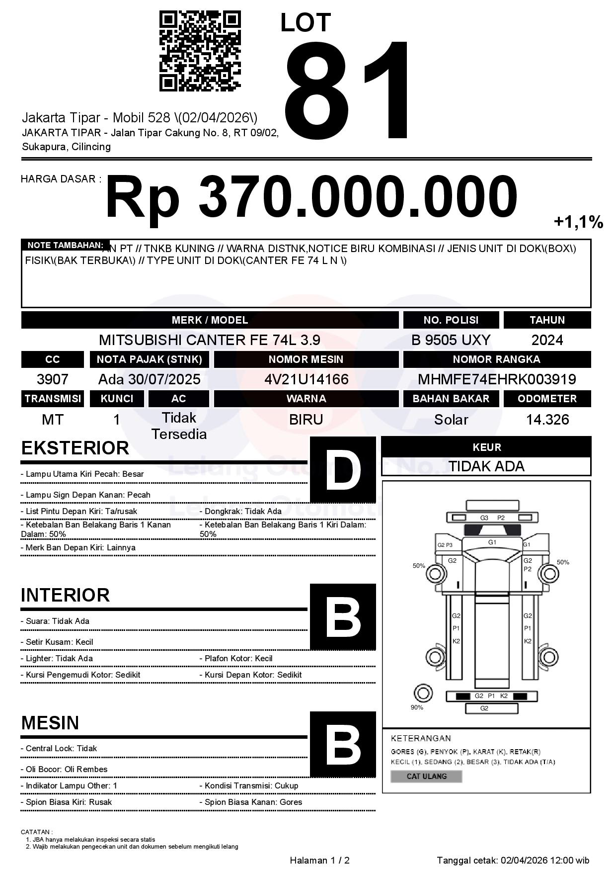 Tanggal Lelang: 02/04/2026 | 13:00 WIB