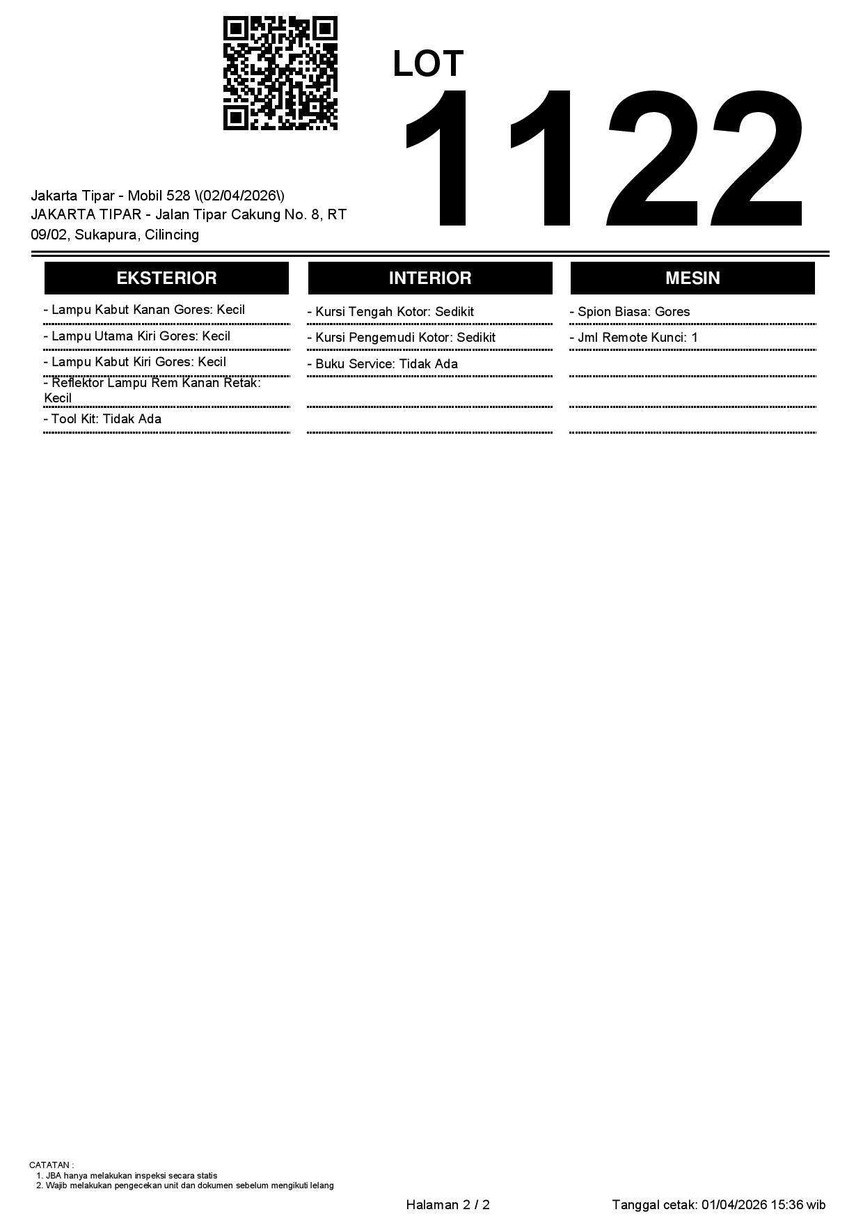 Tanggal Lelang: 02/04/2026 | 14:00 WIB
