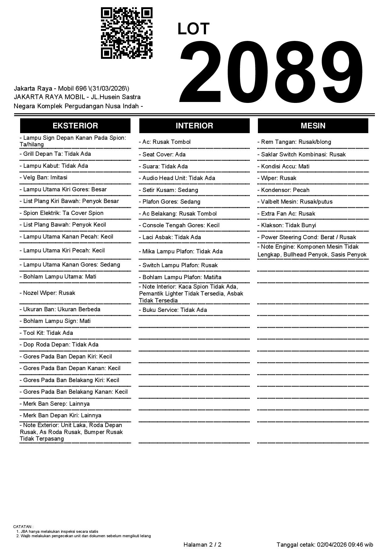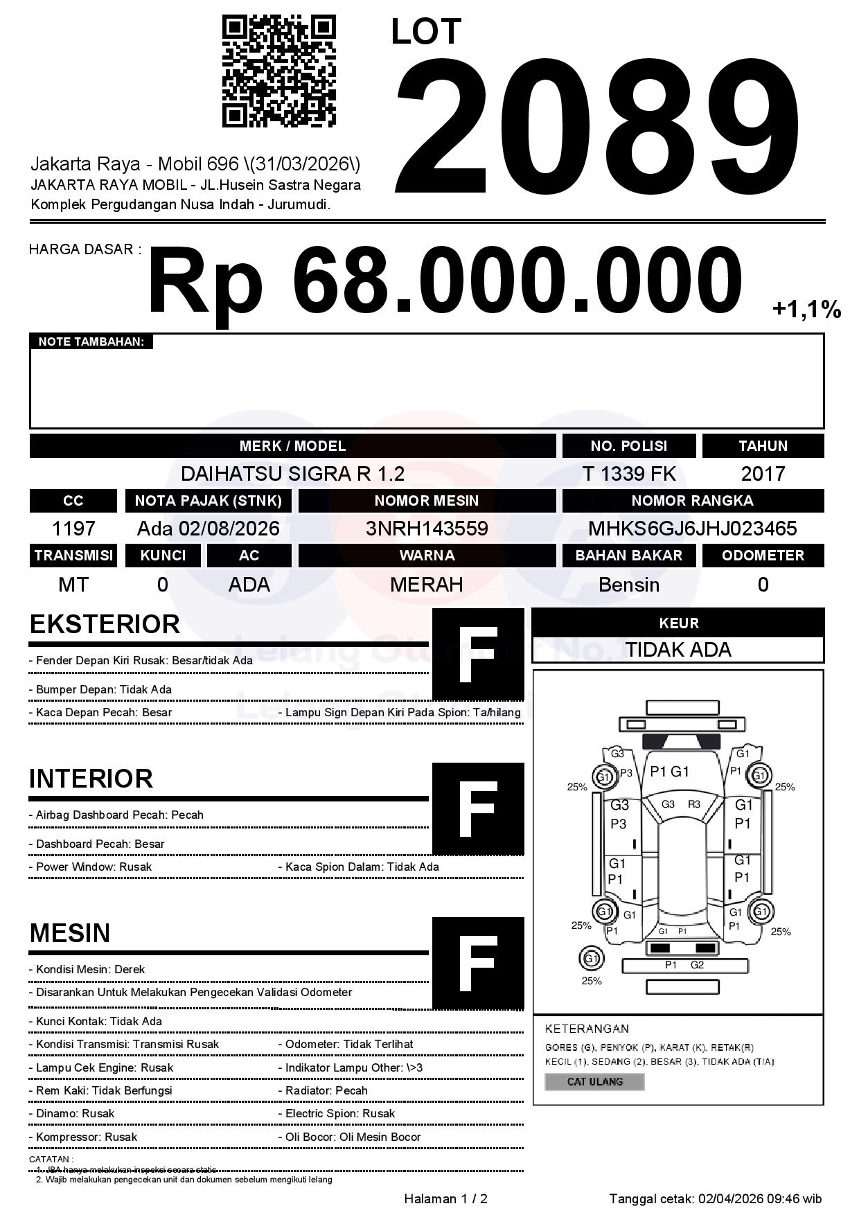 Tanggal Lelang: 02/04/2026 | 13:00 WIB
