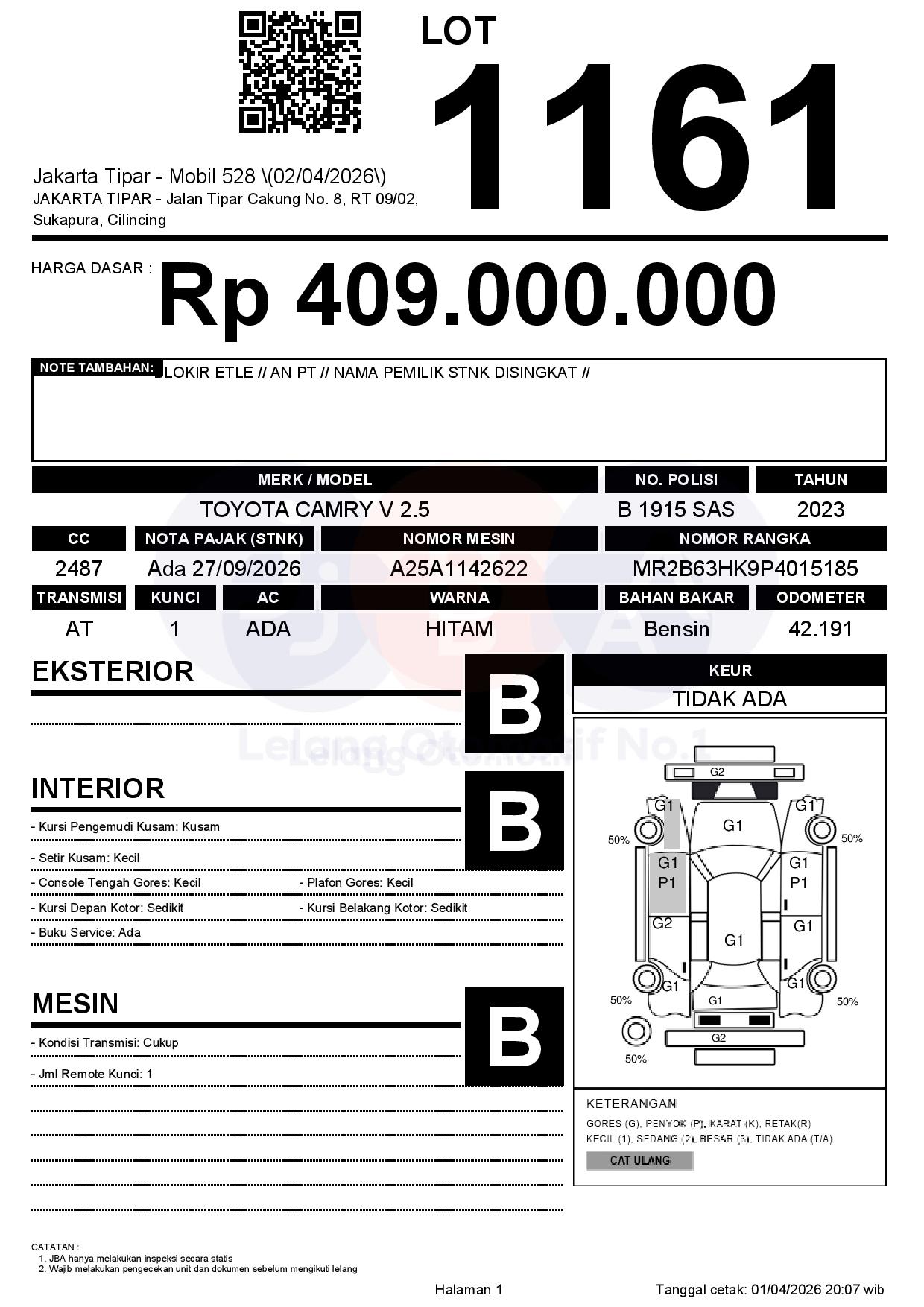 1. Peserta lelang wajib cek unit & dokumen