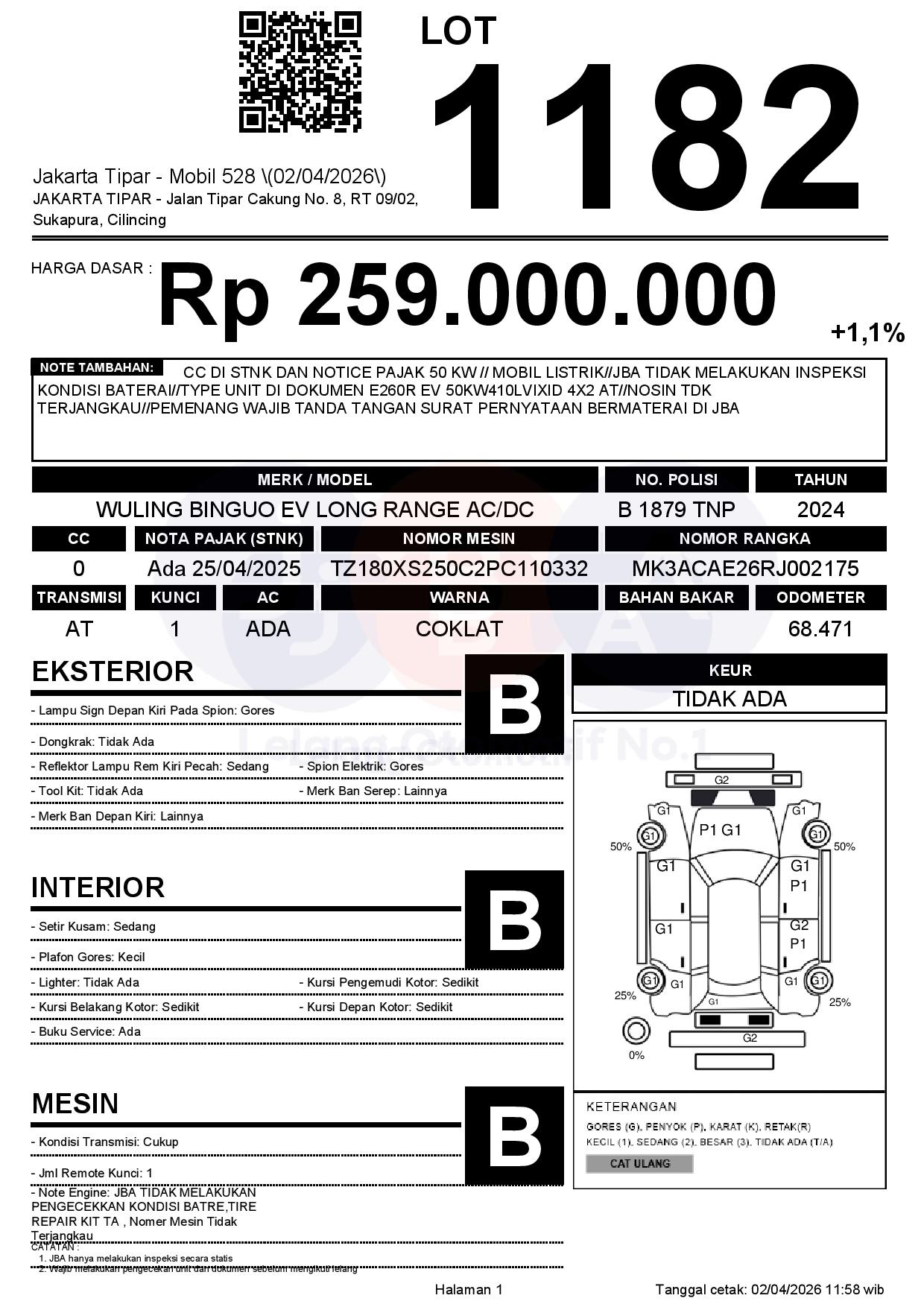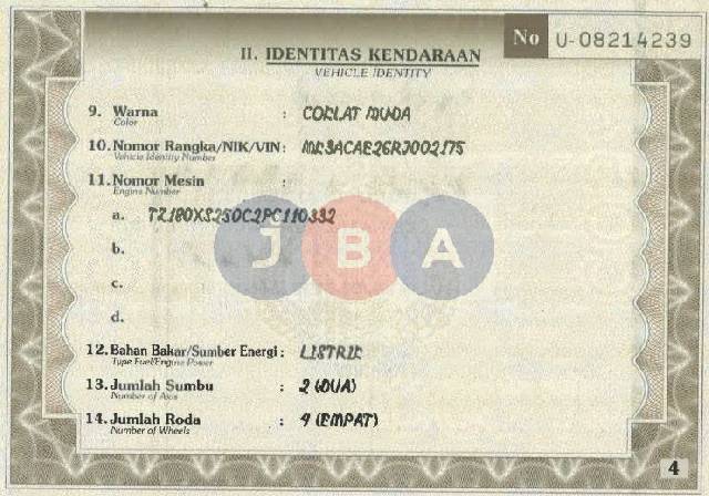 CC DI STNK DAN NOTICE PAJAK 50 KW // MOBIL LISTRIK//JBA TIDAK MELAKUKAN INSPEKSI KONDISI BATERAI//TYPE UNIT DI DOKUMEN E260R EV 50KW410LVIXID 4X2 AT//NOSIN TDK TERJANGKAU//PEMENANG WAJIB TANDA TANGAN SURAT PERNYATAAN BERMATERAI DI JBA