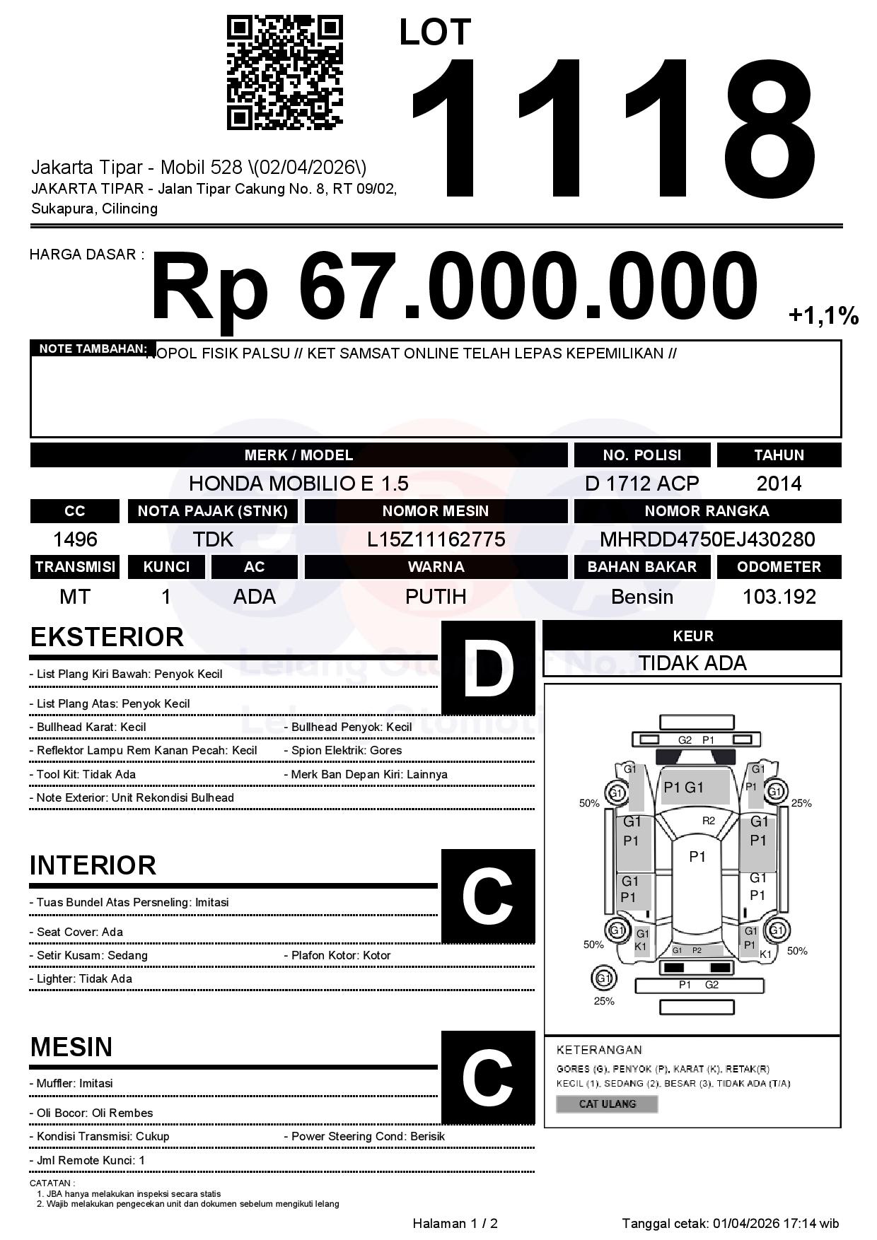 Tanggal Lelang: 02/04/2026 | 14:00 WIB