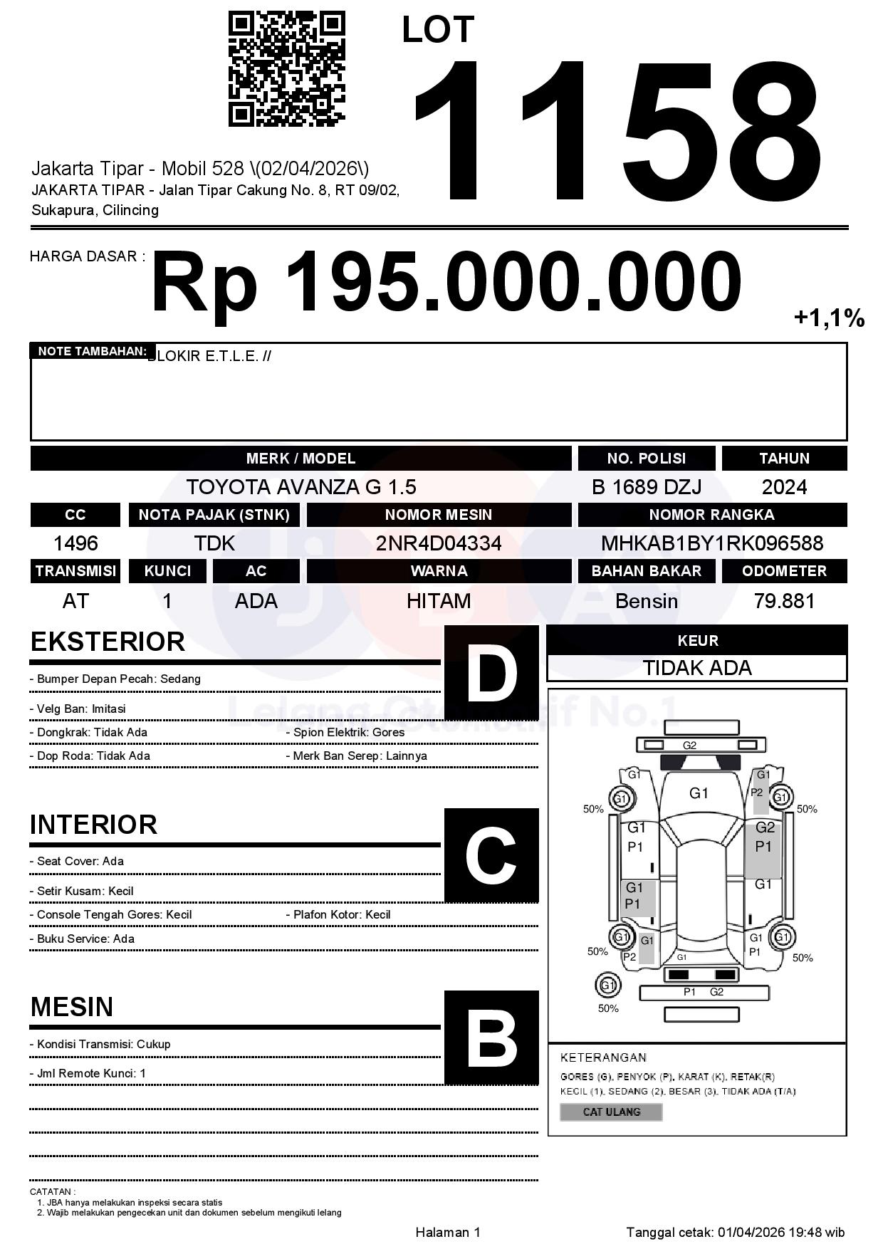 Tanggal Lelang: 02/04/2026 | 14:00 WIB
