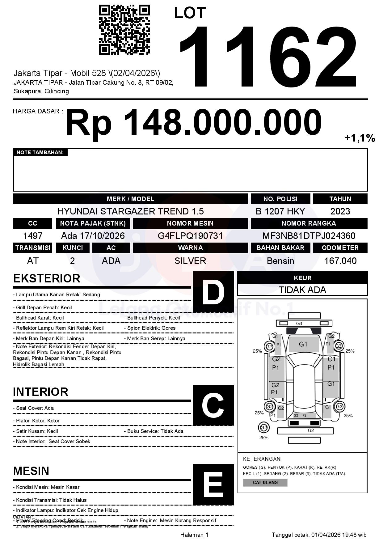 Tanggal Lelang: 02/04/2026 | 14:00 WIB