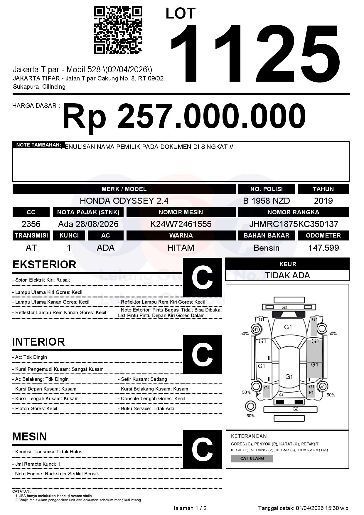 1. Peserta lelang wajib cek unit & dokumen