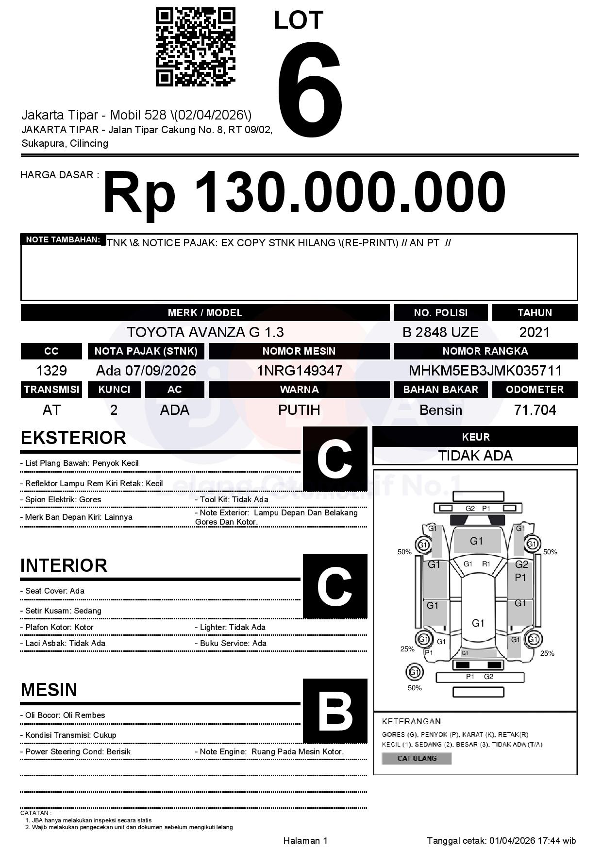 Tanggal Lelang: 02/04/2026 | 13:00 WIB