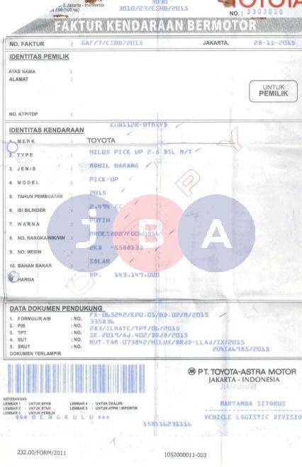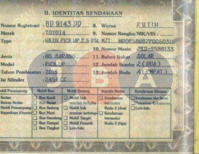 NOPOL FISIK PALSU // TYPE UNIT DIDOC HILUX PICK UP 2.5L DSL MT //